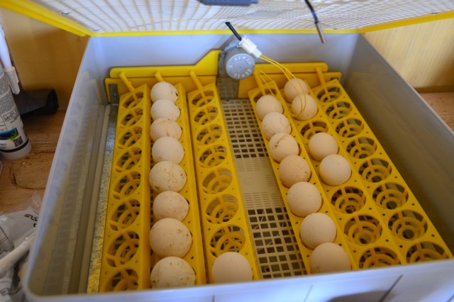 - Ute er også hønsene. De kommer løpende hver gang de tror det er godsaker å få – og det er som regel!
