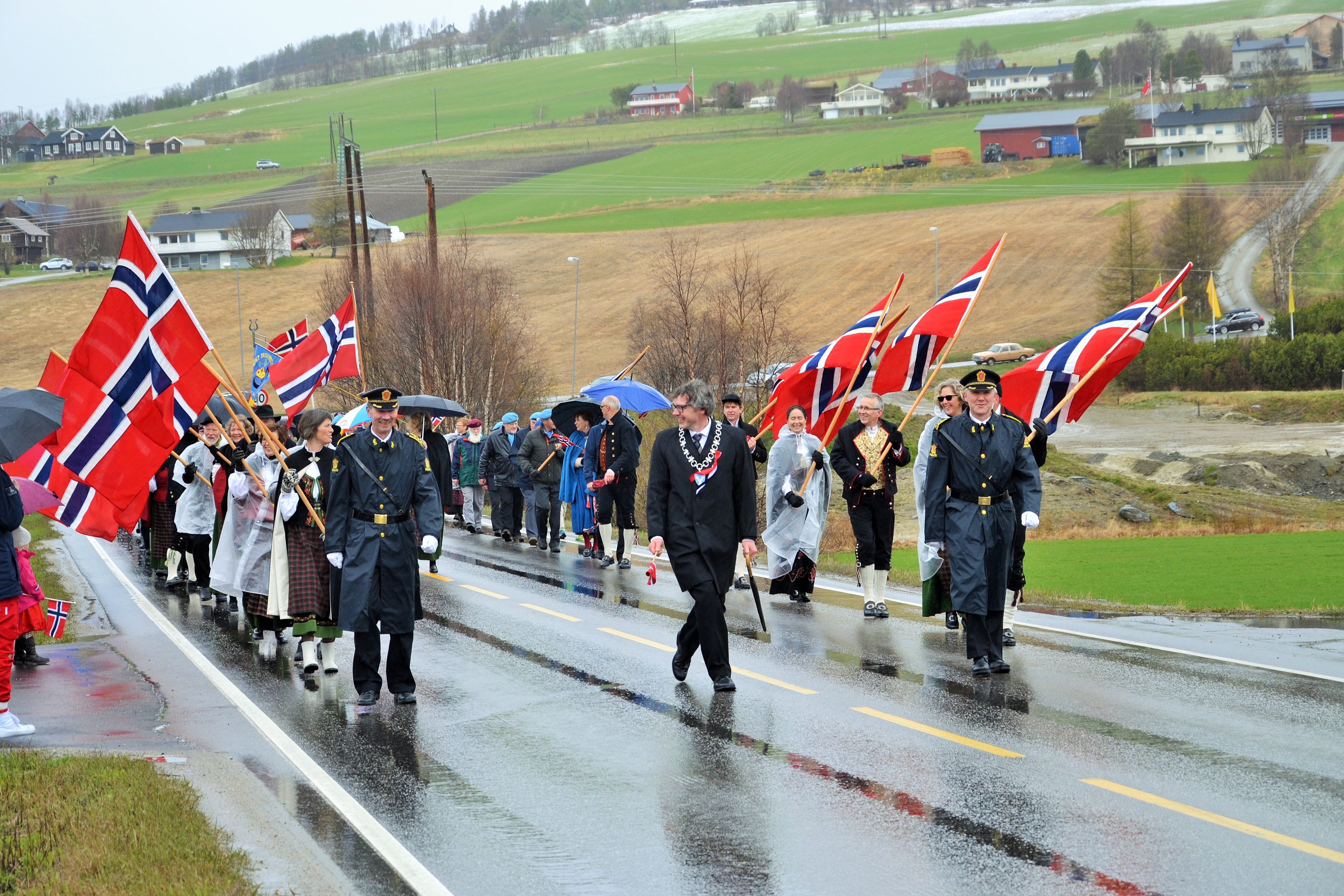 Så kommer barnetoget med 17.maikomiteen og politi og ordfører i spissen, akkurat som det pleier være.