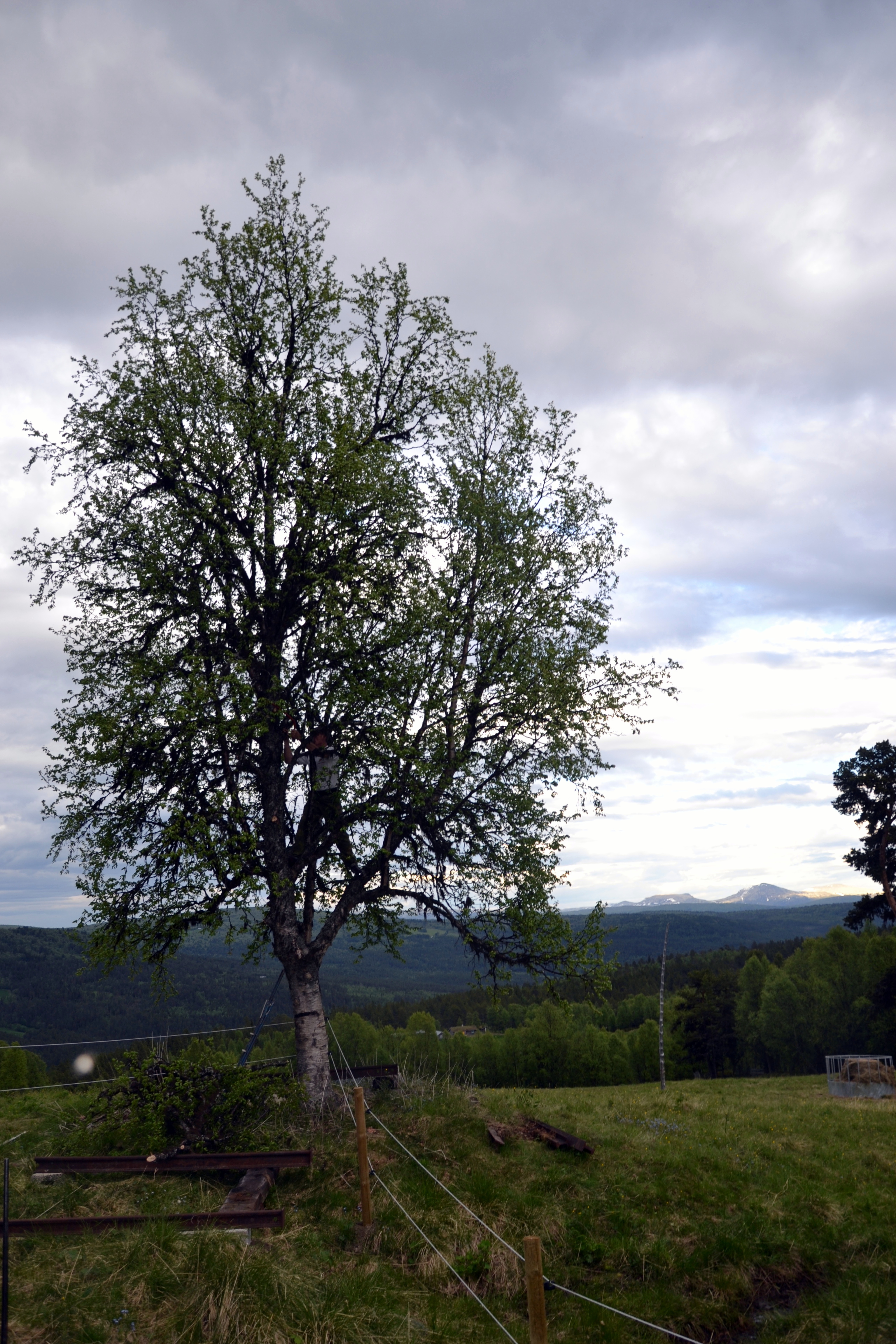 Den gode nabo, Thor, gir en hjelpende hånd, her har han klatret opp i treet med sag, for å fjerne grener slik at huset får plass