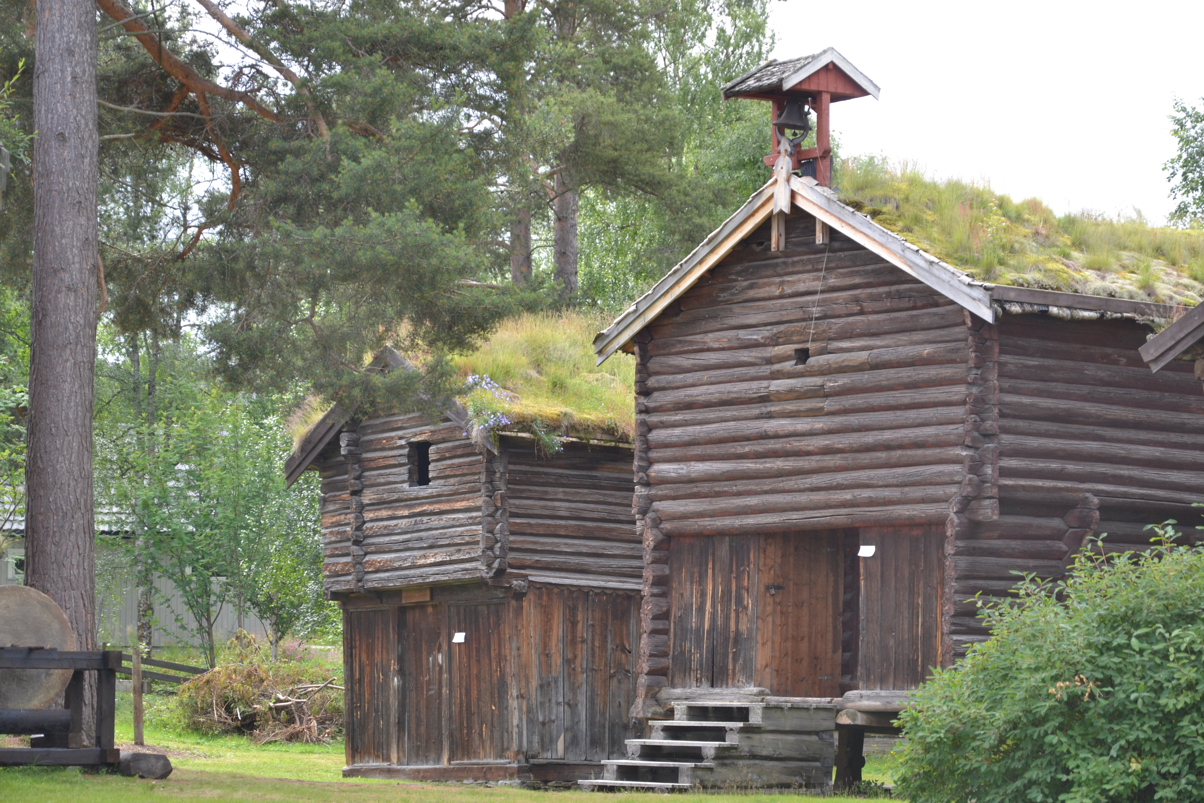 Fortsatt kan vi finne markblomster i parken – her er blåklokker på taket til stabburet!