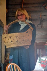 - Her viser Helga Reidun Bergebakken Nesset frem en nydelig tegerkurv som ble brukt til begning. Rundingene på kurven var typisk for trønderske tegerkurver,