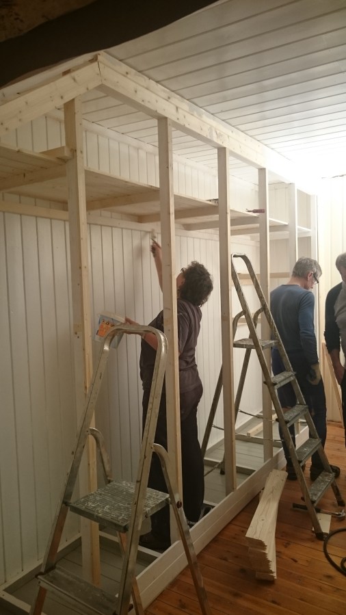 Skjelettet til garderobeskapet kommer på plass, og samtidig blir det malt innvendig