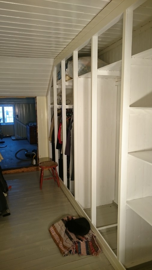 Her er innmaten på plass og jeg har optimistisk begynt å fylle skapet, for nå mangler bare dører