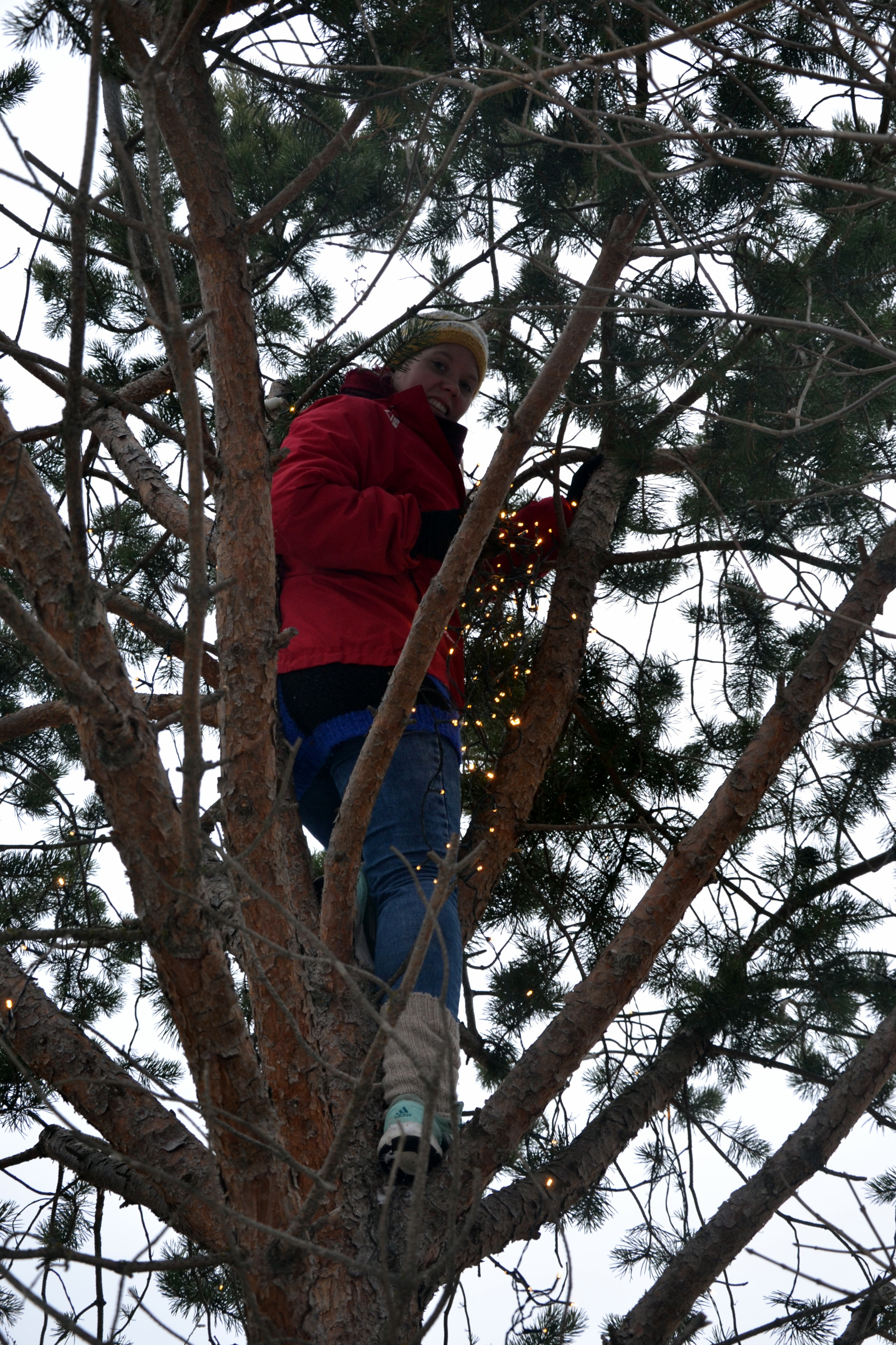 Høyt i toppen med favnen full av lys klatret hun!