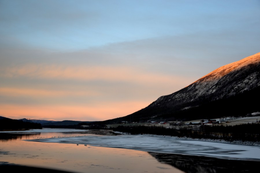 På vei hjem fanger vi dette motivet med svanene på Glomma i det nydelige lyset fra sola som er i ferd med å forsvinne