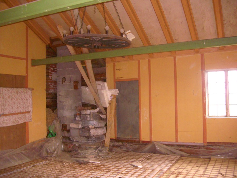 Hjørnet mot kjøkkenet, der kleberstenen til grua lå i en haug