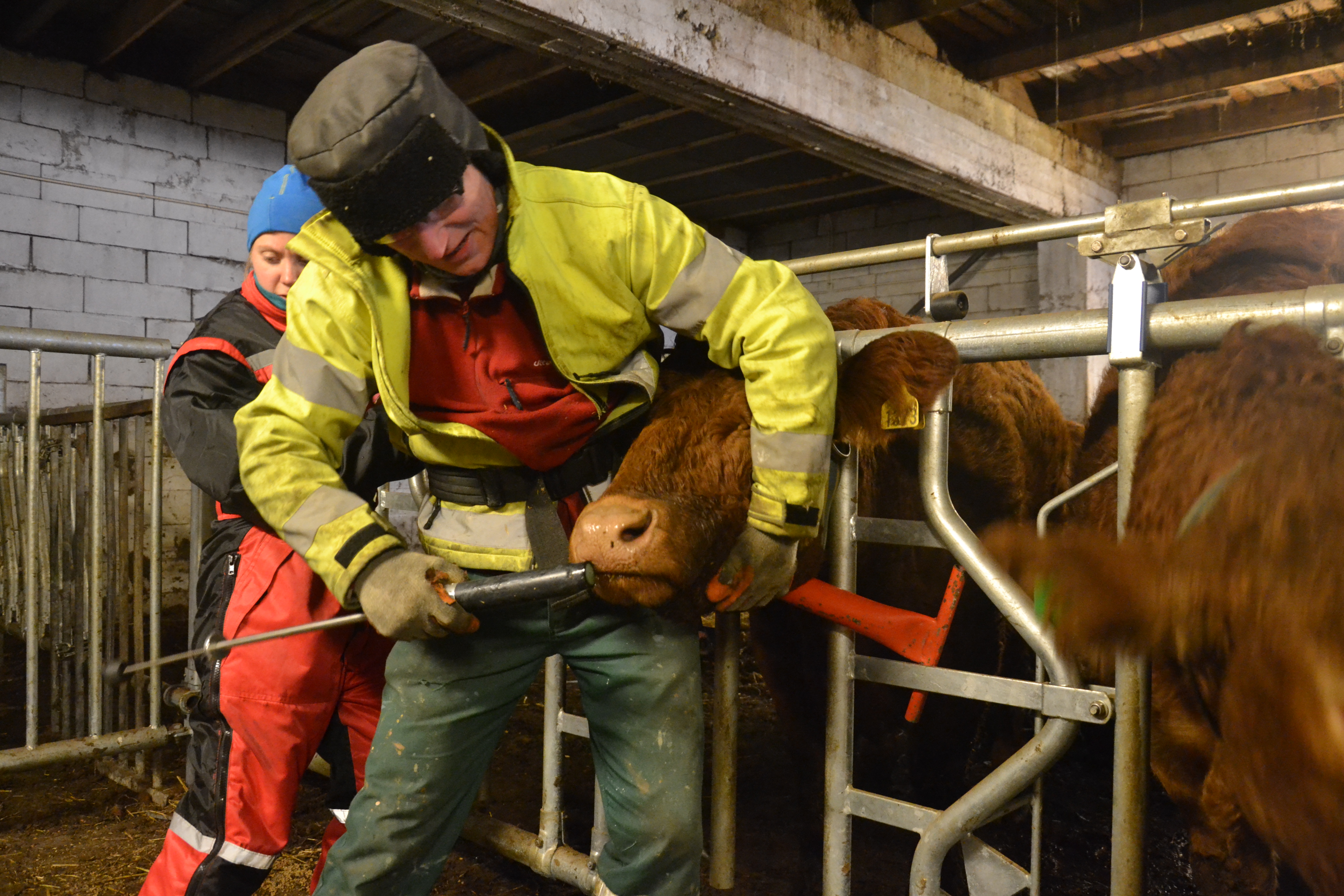 Nye utfordringer i fjøset når det skal legges vitaminbolus ned i magen på kyra.