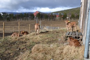 - Kalvene koser seg i vårsola. De liker å krype under det elektriske gjerdet, så har de sitt kalvegjømme, fri fra masete mødre.