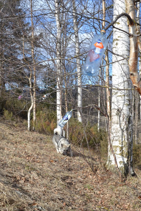 Flasker hang på rad og rekke i bjørkekvistene og sevje fra trærne dryppet ned og fylte flaskene.