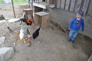 Hønsegården har de siste månedene kun bestått av fire høner og en hane etter at vi måtte «rydde» slik at de ikke hakket i hjel hverandre. Det var nemlig nokså stort overskudd av haner, noe som jo kan forekomme når man klekker ut eggene selv i stedet for å kjøpe fiks ferdige hønekyllinger. I begynnelsen syns vi det var fint å ha alle sammen, hanene er jo veldig flotte å se på, men etter hvert ble det alt for mye uro, og de hakket og plaget hverandre. Dermed måtte hanene bøte med livet og endte i grytene på kjøkkenet i stedet. Nå har vi klekket ut en enslig liten kylling – fra en av våre egne høner (dog ruget i en rugekasse). Vi fant et gammelt fuglebur på loftet som foreløpig gjør nytten som barselbolig for den lille. Den er litt ensom, tror vi, så kanskje skal vi forsøke å ruge ut noen søsken til henne (vi håper altså at det er ei høne!). Når vi tror hun tåler litt kjøligere temperatur og har blitt noe mer robust, kan hun få komme ut til de andre. Men søt som få på dette stadiet, ikke sant? Og hun er sosial! Piper og nærmest «kvitrer» støtt og stadig, men blir roligere når vi kommer inn og tar henne opp i hånda vår. Fargen er grå med litt lysere partier. Siden de fire hønene og hanen vi har er ulike raser, aner vi ikke hvordan denne vil komme til å se ut etter hvert som hun vokser til. De vi har er en hvit italiener, to jærhøns, en svart minorka og hanen er en brun italiener!