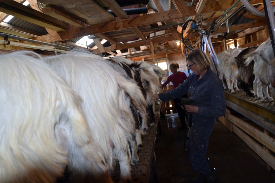Vi hjelper budeia som har sommerjobb på fjellet, og slik lærer vi å melke geiter