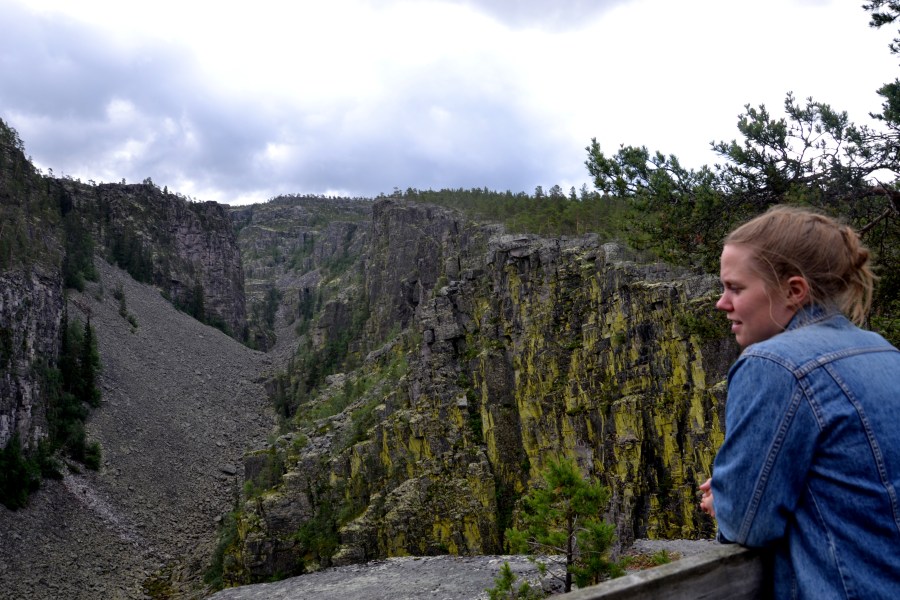 Ved kanten av stupet mot vest er det heldigvis satt opp gjerde.