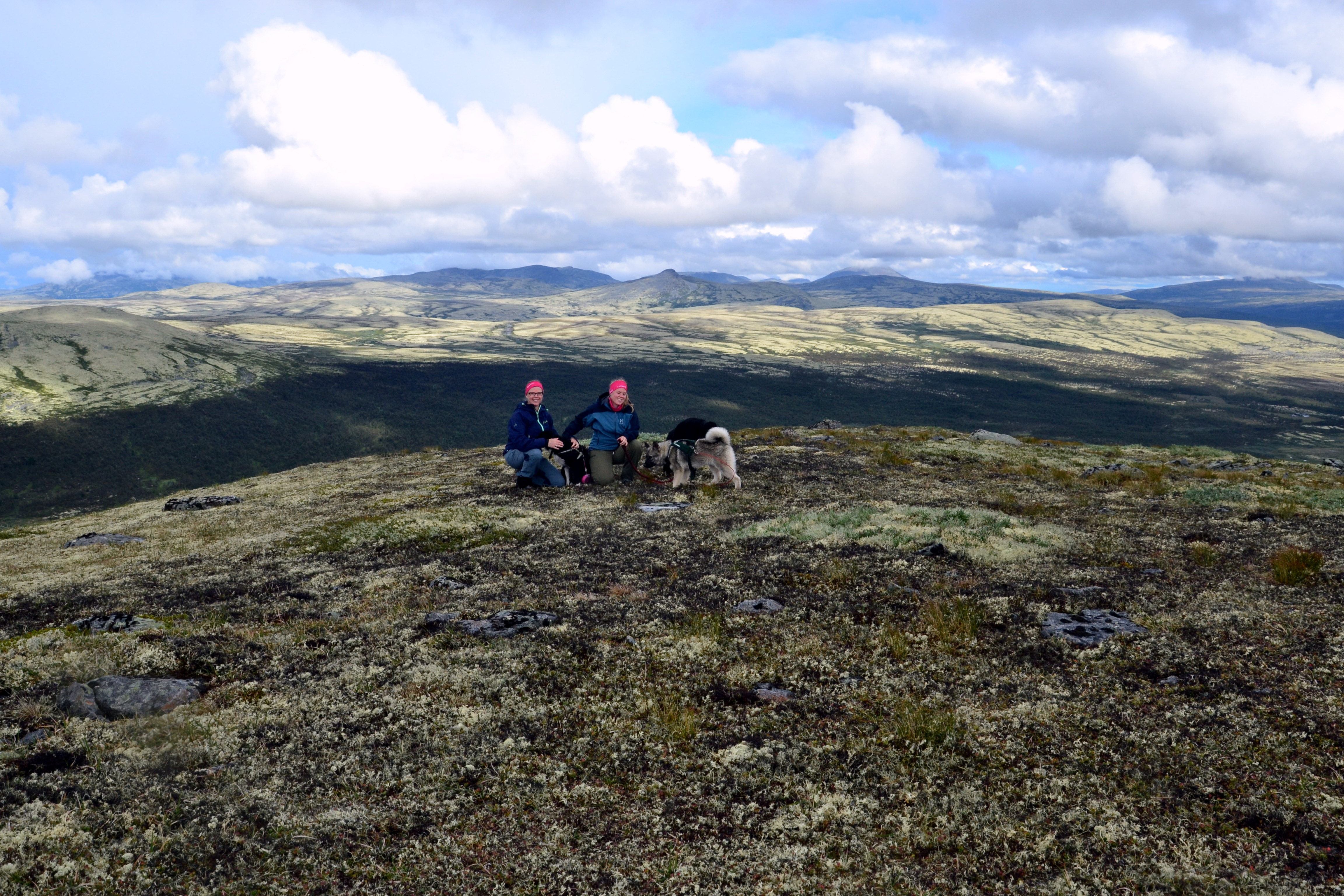 -og utsikt innover fjellene, bl.a. ser vi Rødsjøpiggen bak oss
