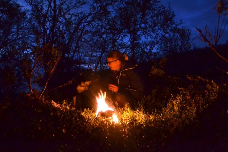 Bålet lyser opp og varmer oss. Bjørk syns visst heller ikke livet er så verst