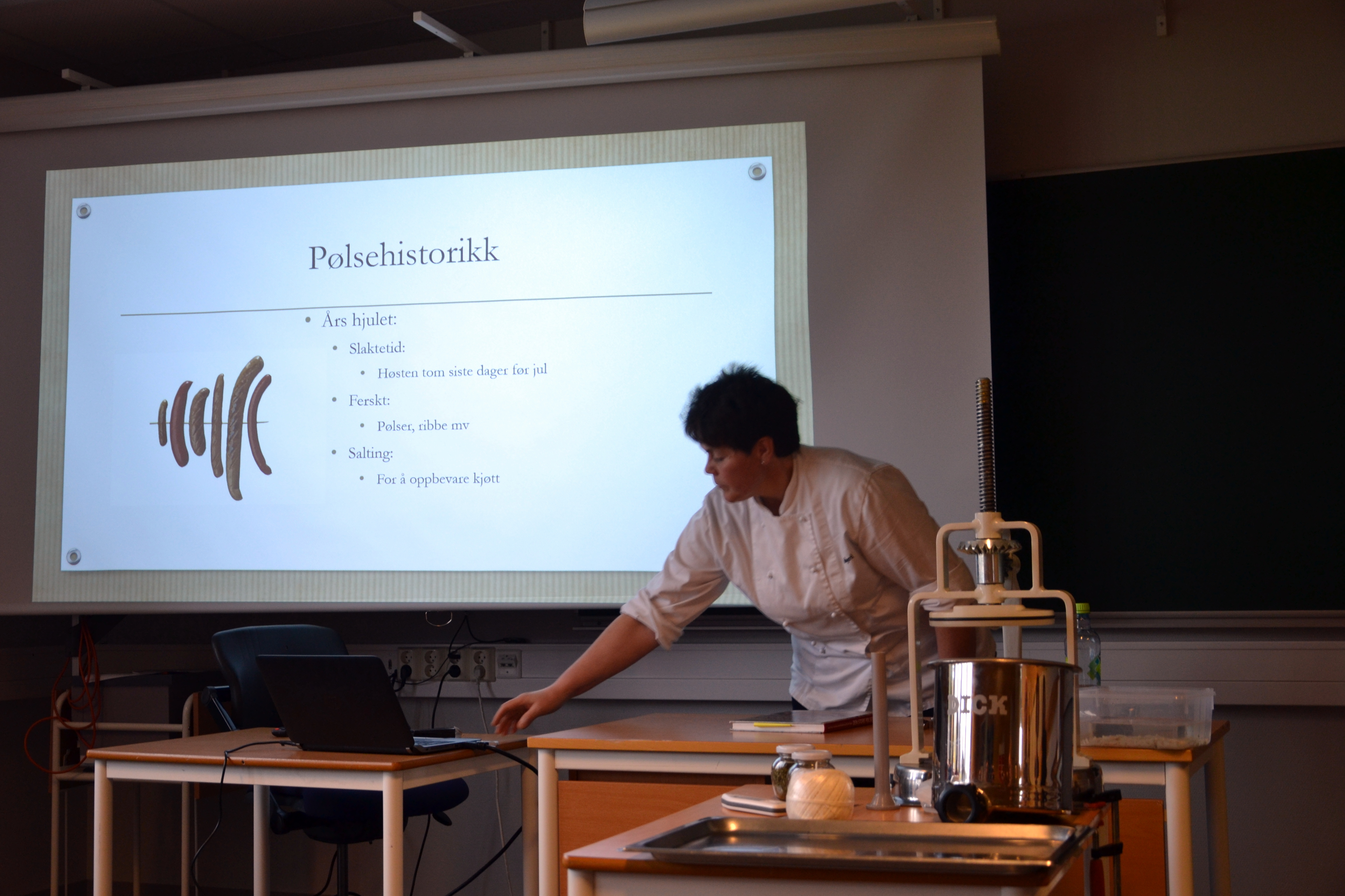 Hallgerd Tronsmoen, Hedmarks første kvinnelige pølsemaker, var en dyktig formidler på kurset.