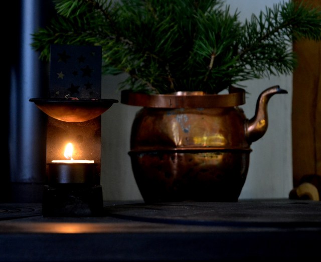 Desember for meg er forventning, sanser som pirres av gjenkjennende, gode dufter , musikk og farger. Og – kanskje det viktigste – minner som dukker opp gjennom lukten av grønnsåpe og pepperkaker og alt det andre som hører med og kommer tilbake år etter år. Fortsatt er det sånn at blant annet kongerøkelsen som tennes første desember fremkaller den gode julefølelsen som ble etablert i barndommen og som lever videre i vårt hus, som nå er her på Storeggen. Vi kan ikke skryte av å ha mørketid her i Nord-Østerdalen, men jammen er det dager i desember som ikke slipper til mye lys. De dagene det er klarvær, blir sola borte bak Tronfjell midt på dagen, og er det overskyet, blir det slett ikke skikkelig lyst i løpet av dagen. Men lyset like før eller like etter sola kommer opp over fjellene, er nydelig!