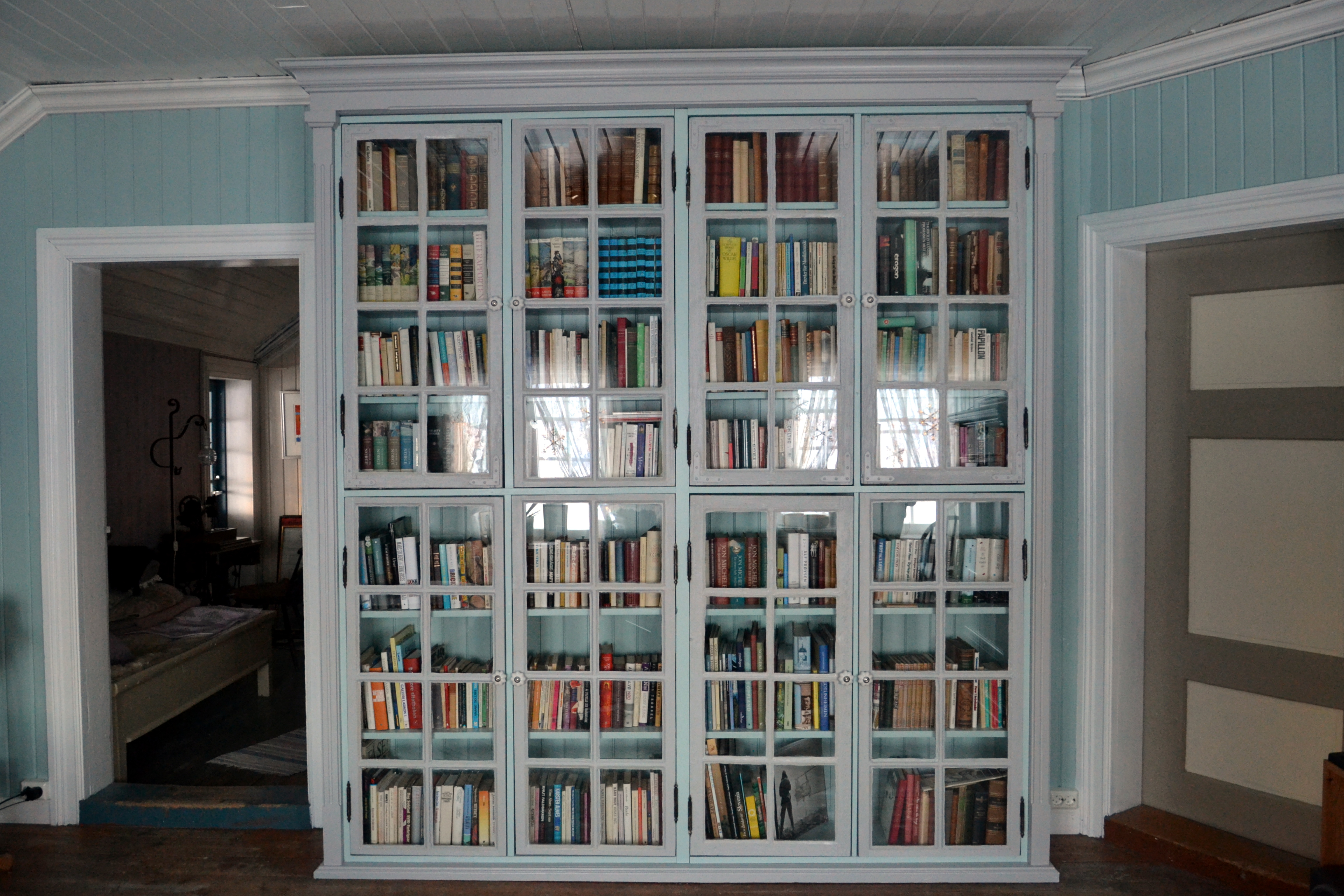 Og sånn ble skapet da vinduene var på plass.. Ferdig malt, glassene pusset og alle hyllene fylt opp med bøker.