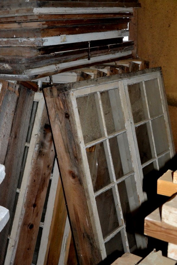 De gamle vinduene sto lagret på låven, og vi plukket ut de som var mest originale.