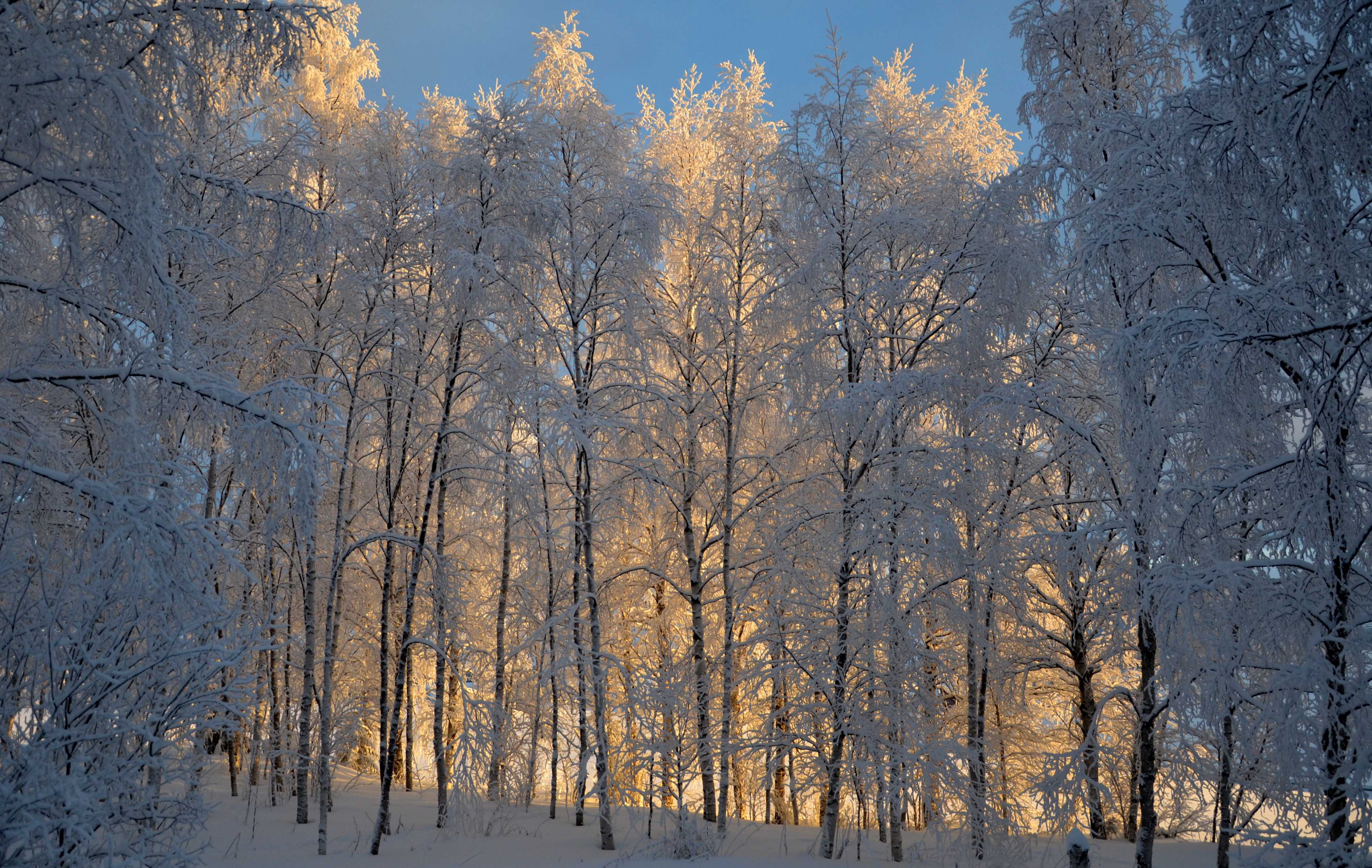 Ranke bjørker har pyntet seg i hvitt