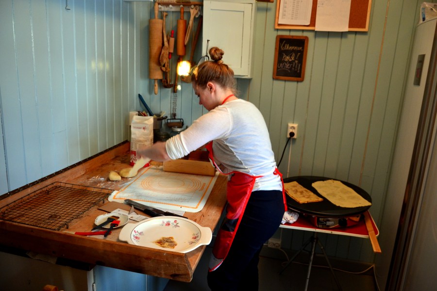 Vi går over til å gjøre det på vår egen måte, og kjevler firkanter i stedet for runde leiver. Det vesle baksterommet vårt, det såkalte pikerommet, er akkurat passe for oss