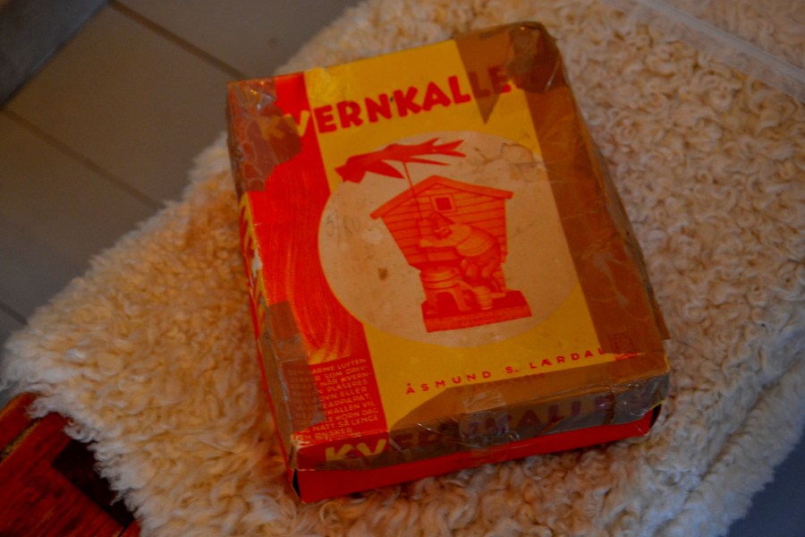 I sin tid kostet han kr 5,80, uvisst når den ble kjøpt. Som man ser, henger esken bare så vidt sammen, tross tape rundt alle kanter.