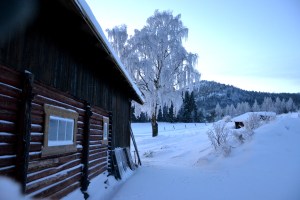 - Innimellom har bonden laget omramming til bakdøra inn til vaskerommet, lik omrammingen til hoveddøra på andre siden av huset.