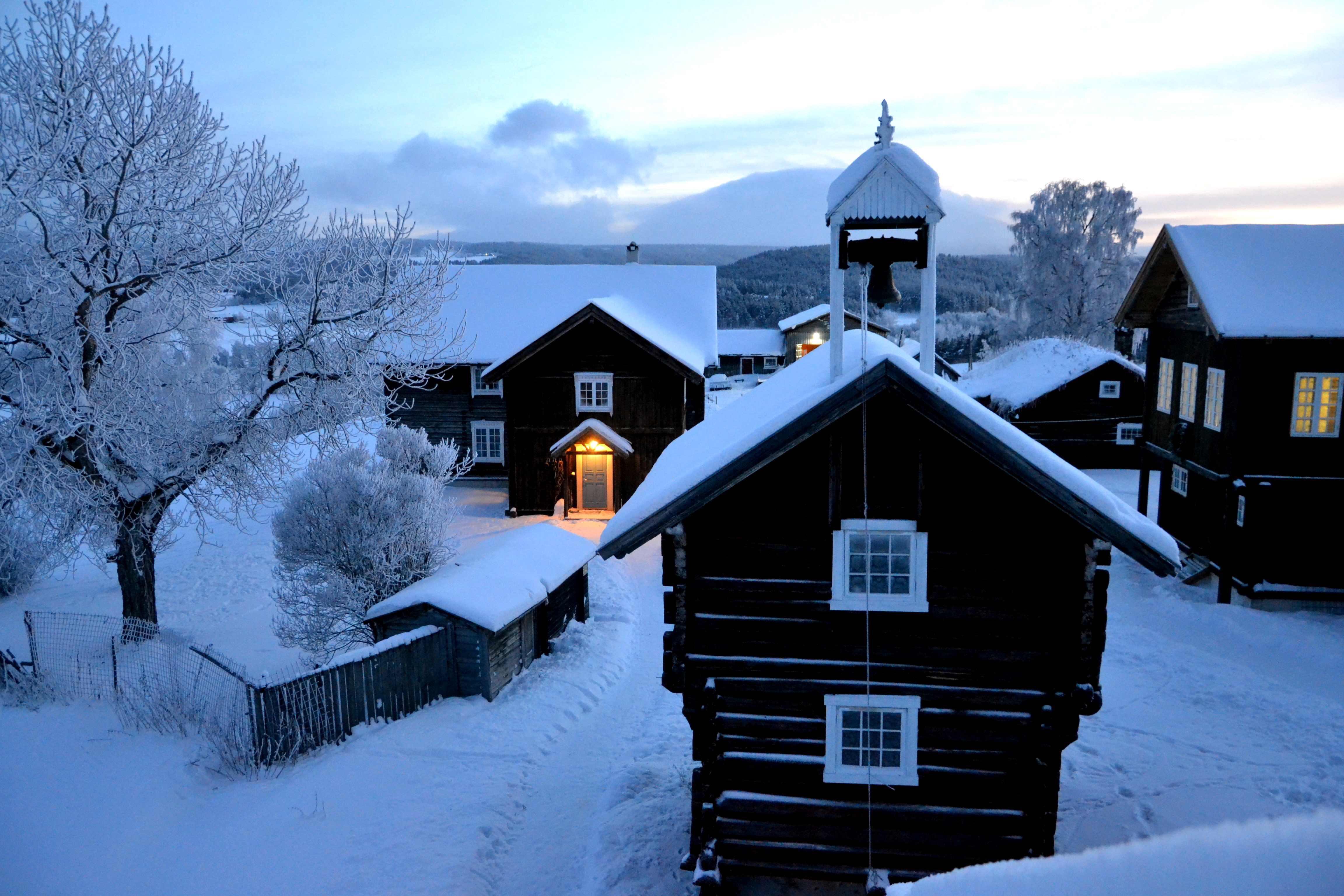 Upåklagelig utsikt mot tunet og Tronfjell fra øverst i trappa på baksiden av garasjen.