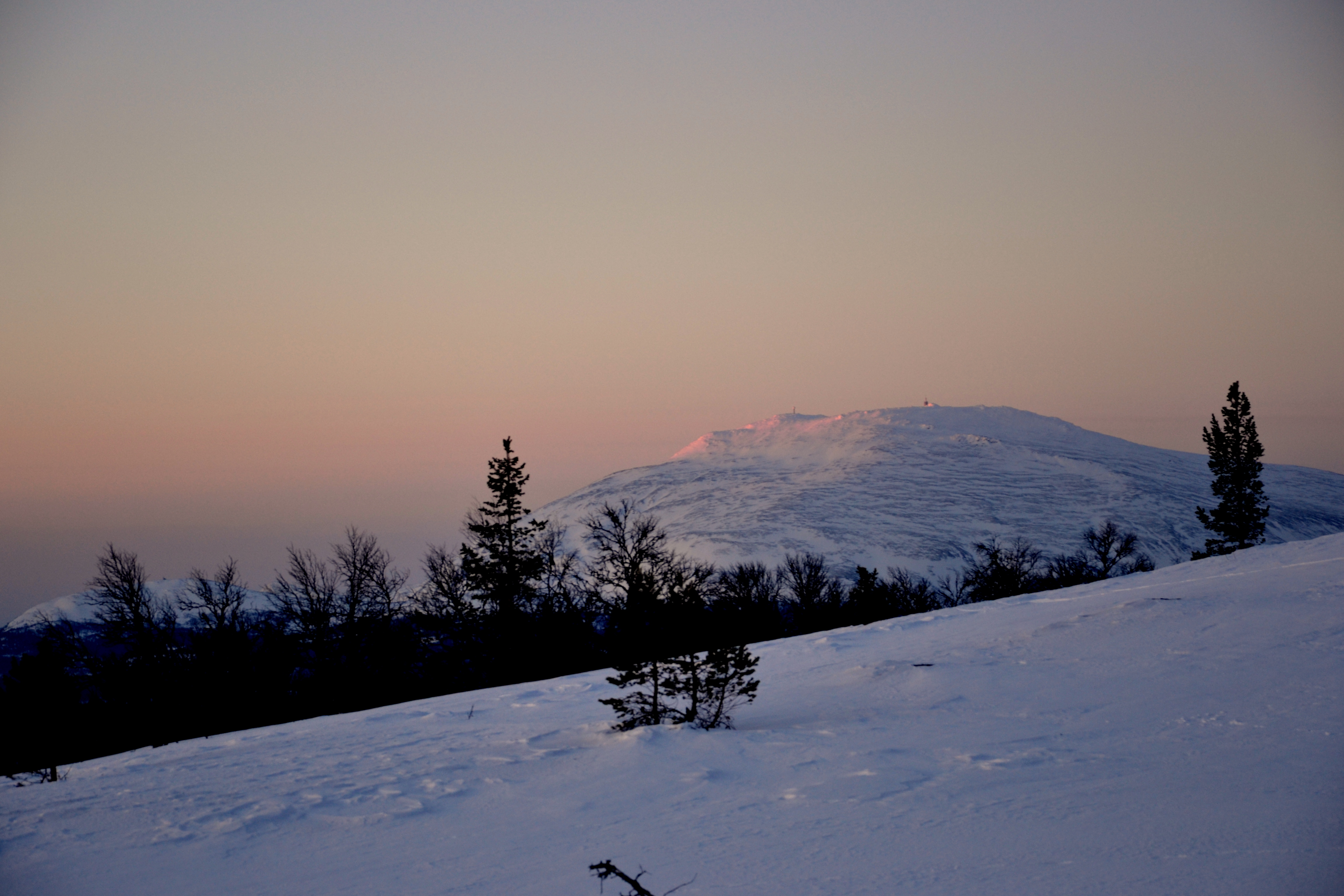 De første rosa solstrålene har truffet Tronfjell
