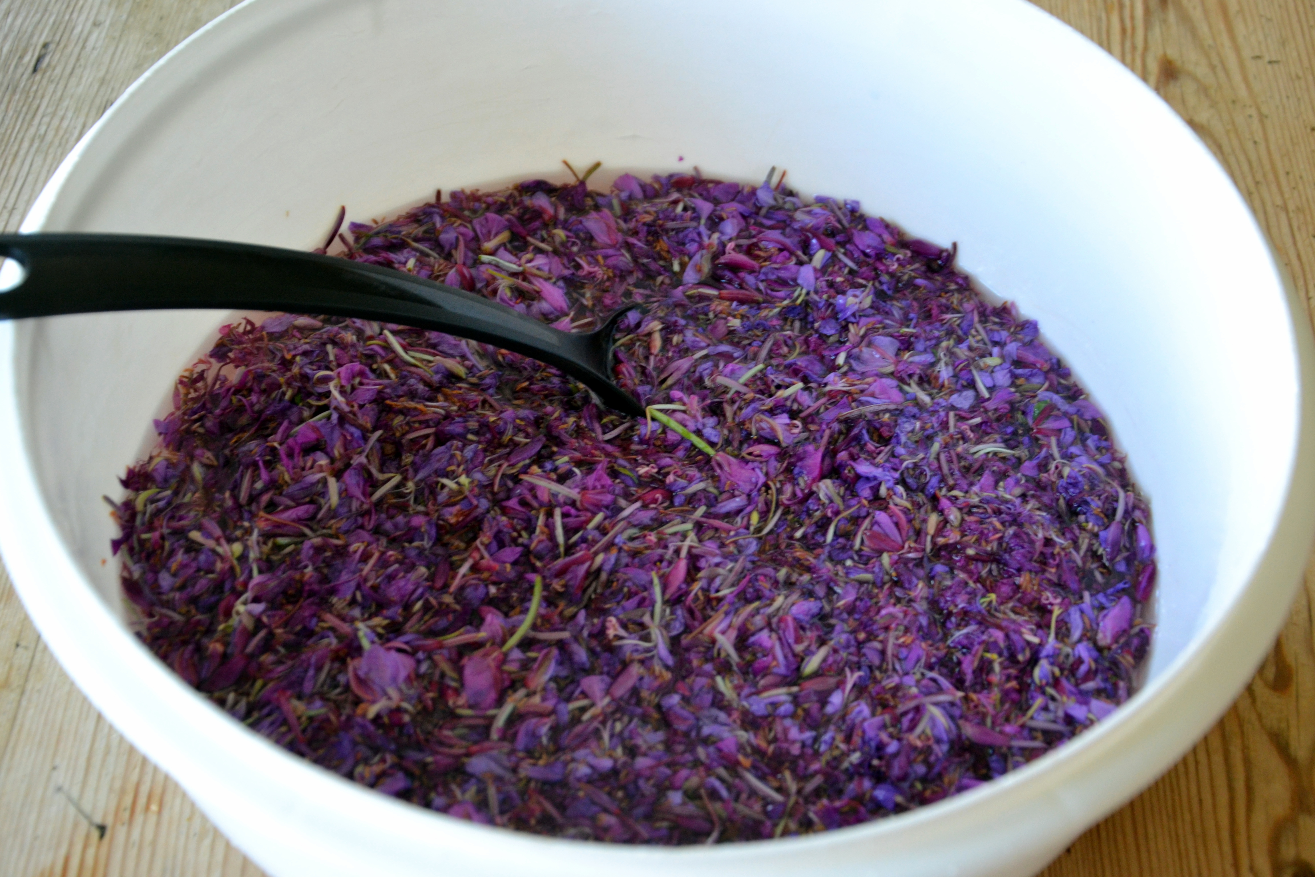 Når den varme laken er helt over blomstene blir fargen dypere