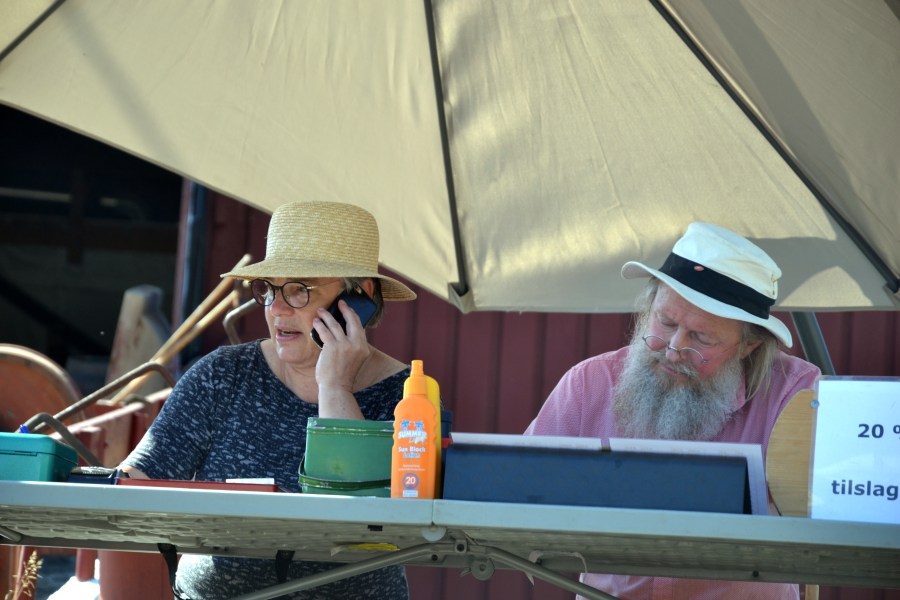 Auksjonens sekretariat, Olas hhv kone og bror, har det hett under parasollen.