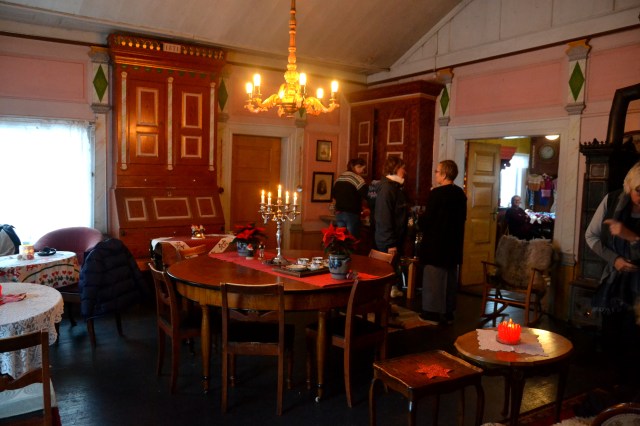 I dag dro jeg og møtte venninne Marit hos en annen Marit i Vingelen. Der arrangerer gardsfrua julekaffe med et lite minijulemarked i gammelstua fra 1854. Årets mest sjarmerende, uten tvil.