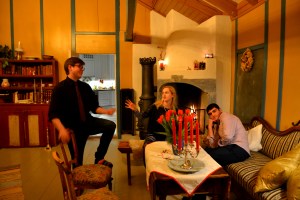 Bittelille julaften, altså 22. desember, var det tid for å finne årets juletre. Vanligvis er det husets døtre som har hatt den jobben, men i år ble det oss «sjølfolket» som måtte ordne treet. Det begynner å bli vanskelig å finne et egnet tre i skillet mellom de to jordene der vi har funnet alle juletrærne tidligere år. De fleste har nå blitt alt for store til dette bruket. Dessuten er de litt rare og usymmetriske i veksten. Vi fant et til slutt. Alt for høyt, det også, men en stor del av stammen nederst ble kappet, og dermed fikk det plass oppunder det høye taket i storstua. Et villtre, er det, tett og viltvokset, men deilig granduftende. Med lys og pynt på ser det ikke så verst ut, heller. Lurer på hvem som bor innimellom grenene der, forresten. Det skal visst være gode vilkår for mange slags kryp i slike trær.