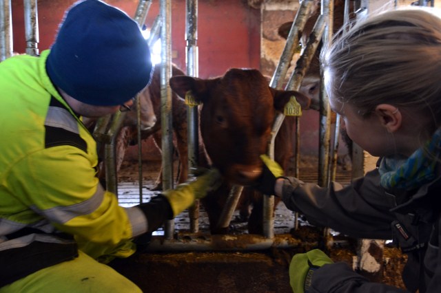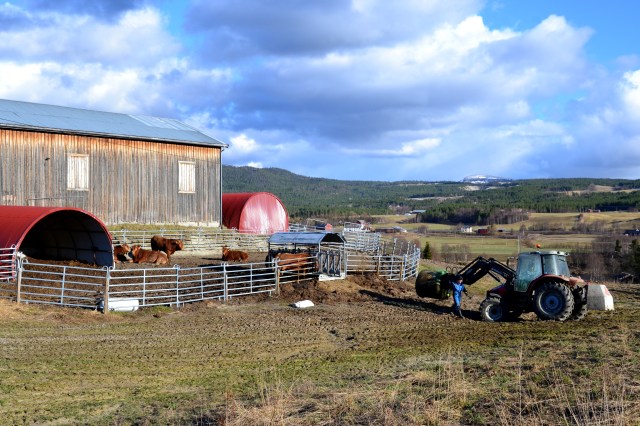For oss som kun har en liten besetning med limousinkyr, er ikke situasjonen den samme. Her kommer det vanligvis en kalv nå og da i løpet av en periode over et par måneder om våren. Denne våren skulle tretten av våre kalve. Noen må dog ha hjelp her også. For et par uker siden var det Juni, en toårig kvige, som trengte bistand. Fødselen var i gang, men kalven kom med bakbena først og moren klarte ikke å få den ut selv. Heldigvis var bonden i nærheten, og fikk ut kalven. Etter litt startvansker der kalven måtte holdes oppe for å tak på mors spener, greide den etter en tre – fire dager selv å stå på bena og finne den livsviktige maten. Kalven fikk navnet Calvin Klein, men er heldigvis ikke så klein lenger. Foreløpig er han en av fire ferskinger i fjøset.