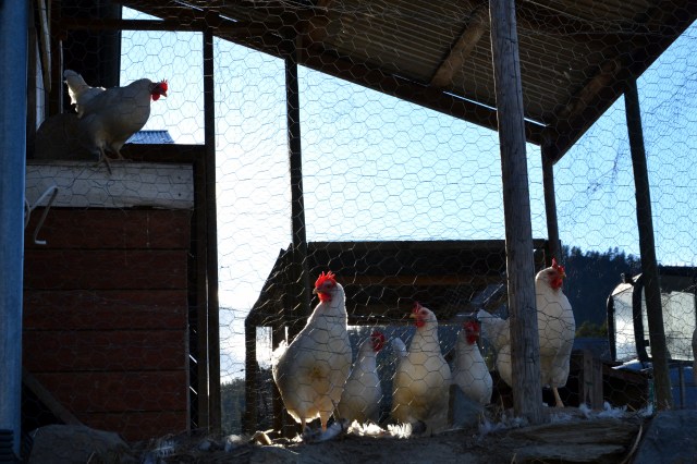 - I hønsegården er det merkbart mer liv etter som lys (og varme kommer..
