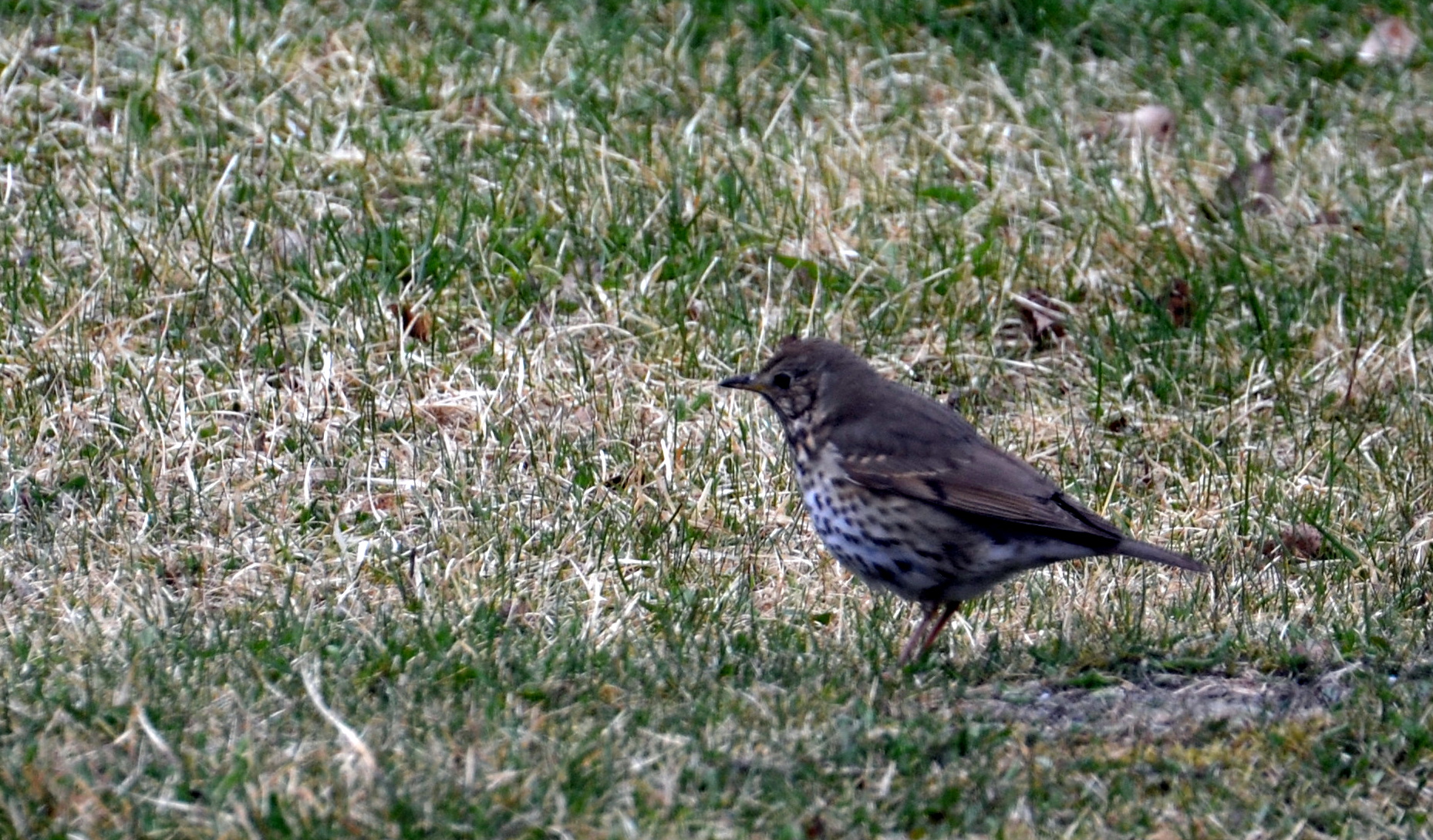 I naturen begynte det også å dukke opp vårtegn – som denne trosten på plenen.