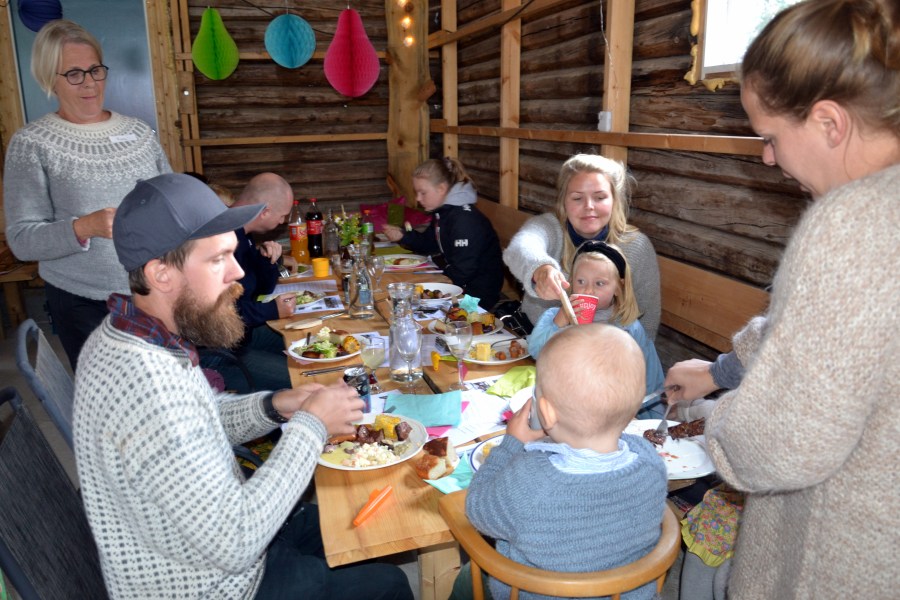 Gården full av folk og moro