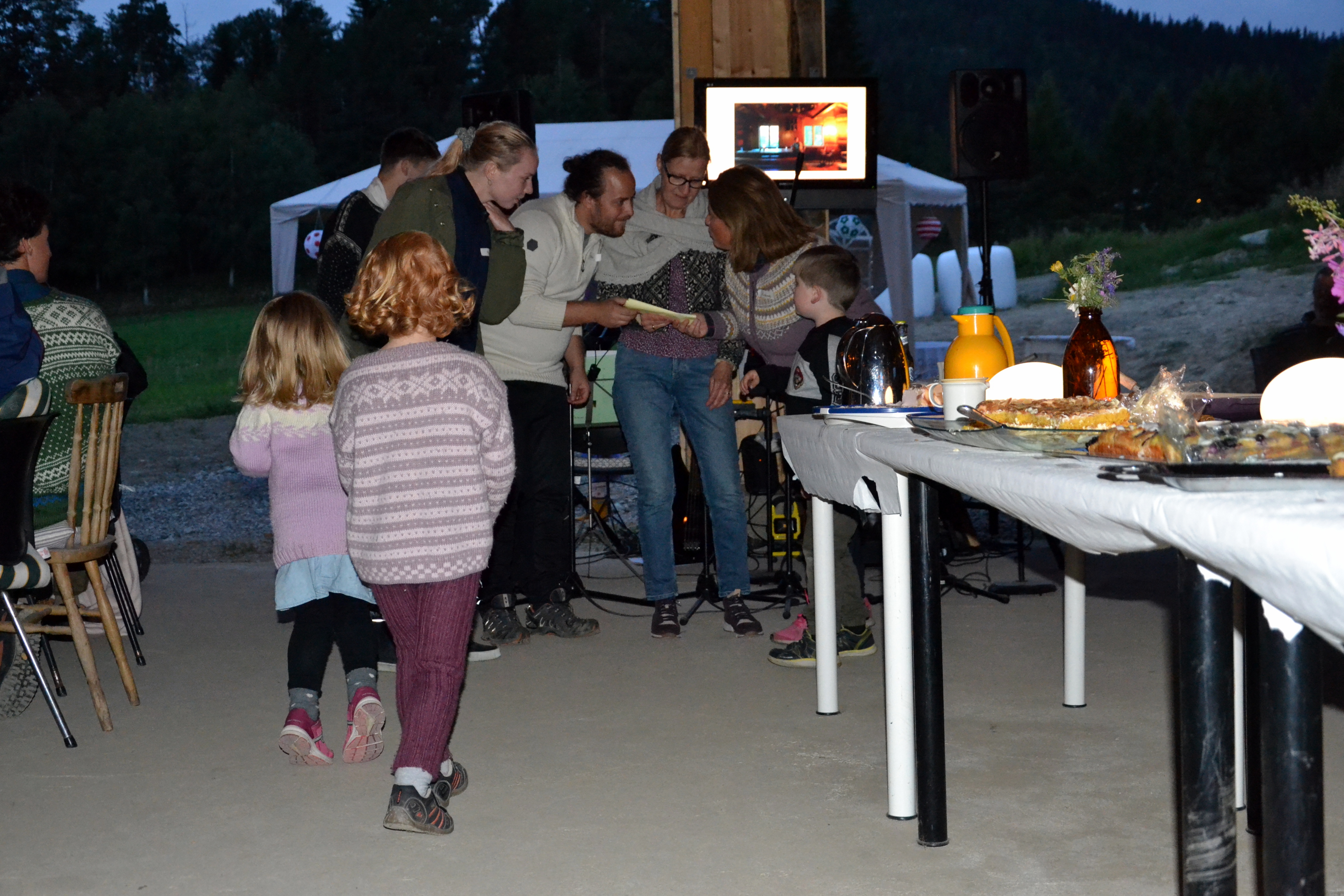 Gården full av folk og moro