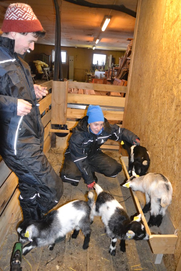 Viktigste aktivitet i jula har vært killingkos, her ved Richard og Live Johanna