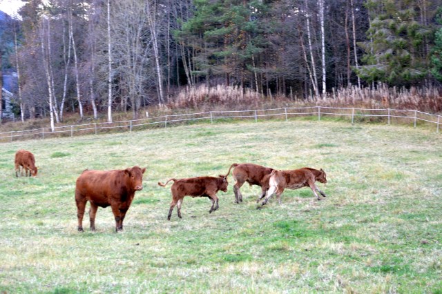 Unger er unger – tre av kalvene leker sammen, som unger flest