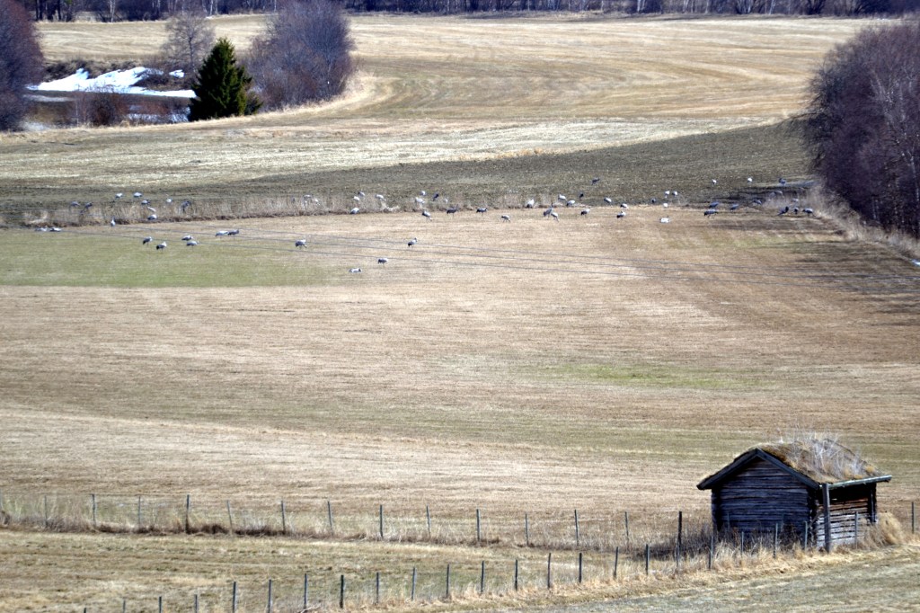Noe minner likevel om vår utenfor, det kvitrer og yrer av liv både rett utenfor vinduet vårt og lenger unna, på Tyvesletta og på jordene. Traneflokken har, tradisjonen tro, dukket opp på sletta og skvaldrer med sine skarpe skrik sammen med noe av sangsvanene som har trukket oppover Glomma ettersom isen har gått. I fuglekassene våre forberedes det også for nytt liv og det er travle tider for småfuglene der de flyr frem og tilbake og ordner til sitt bo. På bakken under fuglebrettene våre er det en haug med fuglefrø og der får fuglene daglig selskap av ekornfamilien som bor like i nærheten. Bonden vår observerte nylig at de har blitt til fire. Geitene våre koser seg også utendørs og har begynt å finne spiselige ting over alt, og selv Gudleik Knotten-katten godtar å oppholde seg noen timer utendørs, tross den varmekjære og litt late katten han har blitt.