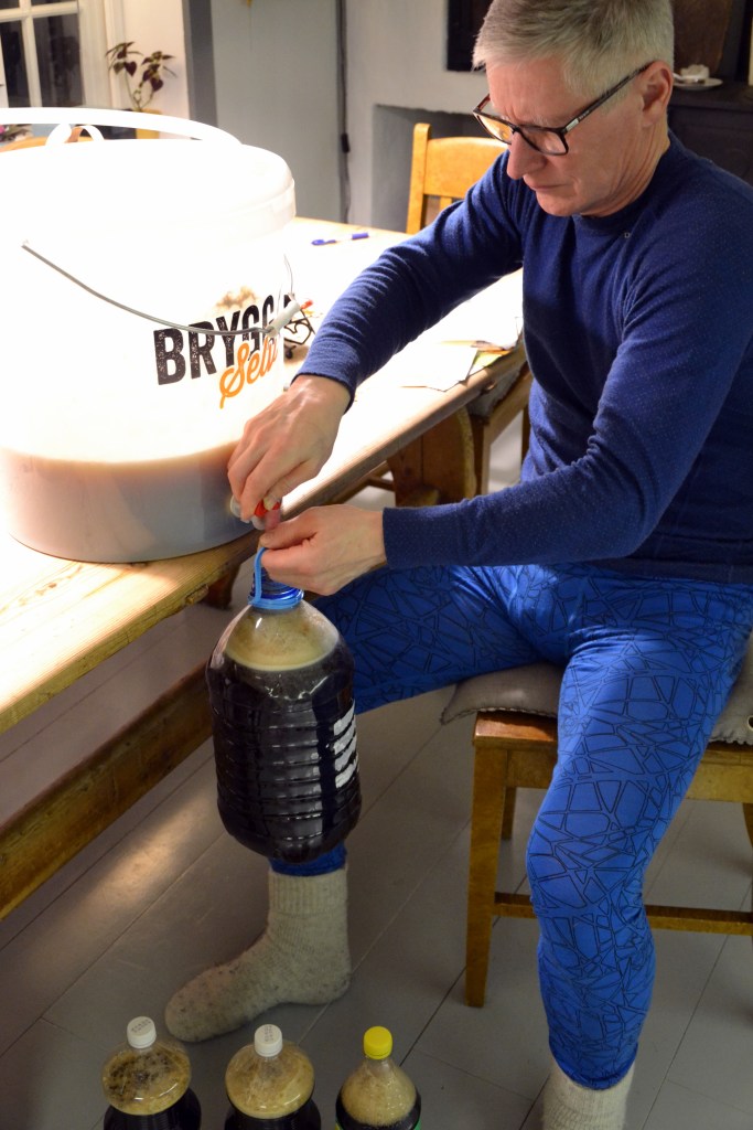 I år har vi også laget tomtebrygg, i utgangspunktet et alkoholfritt øl, som både jeg og husbonden husker fra vår egen barndom. Selv har vi ikke laget det på mange år, men nå fikk jeg lyst på det igjen. Det var jo «lett som en plett» – og over tretti liter er tappet på flasker som står klare i kjelleren.