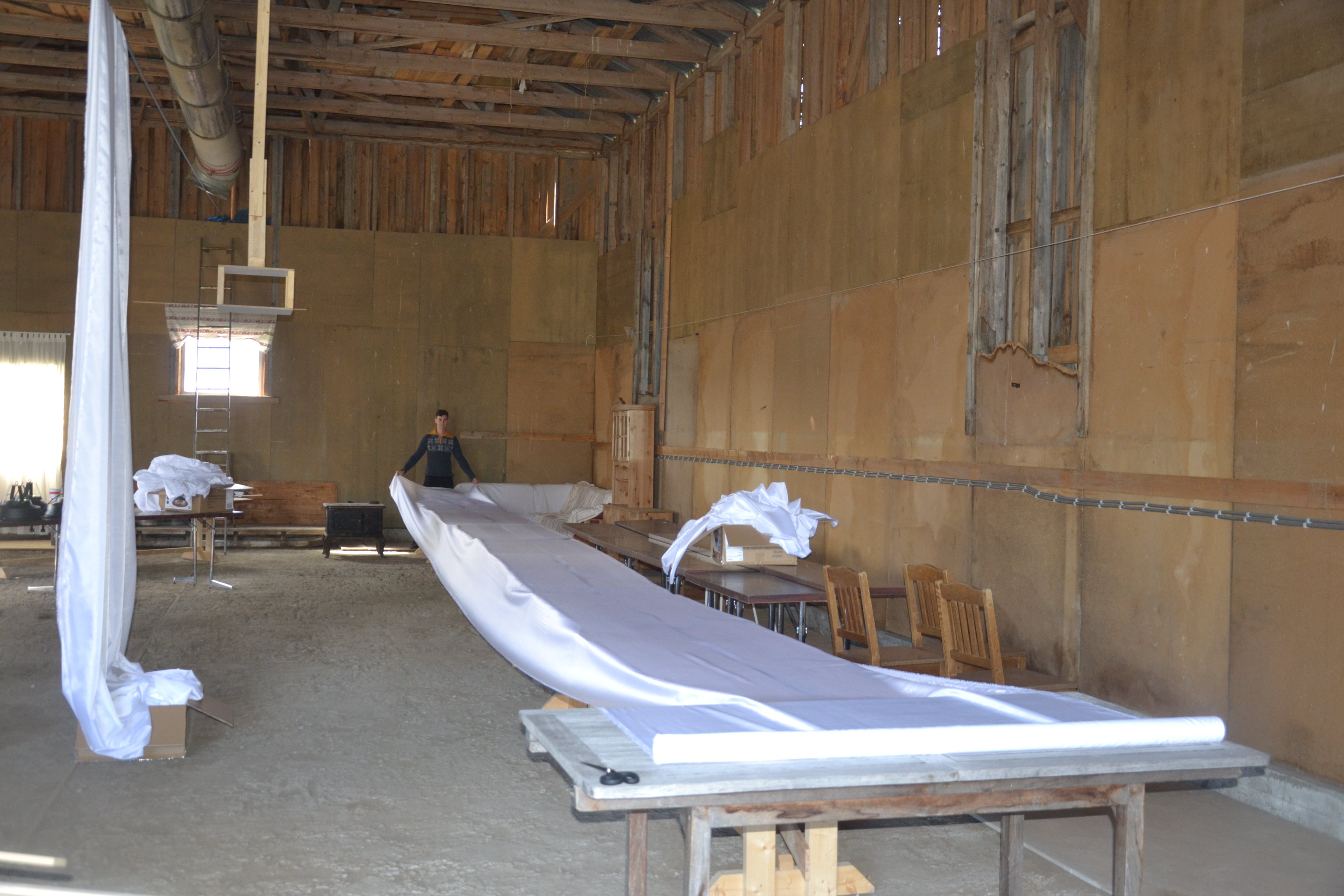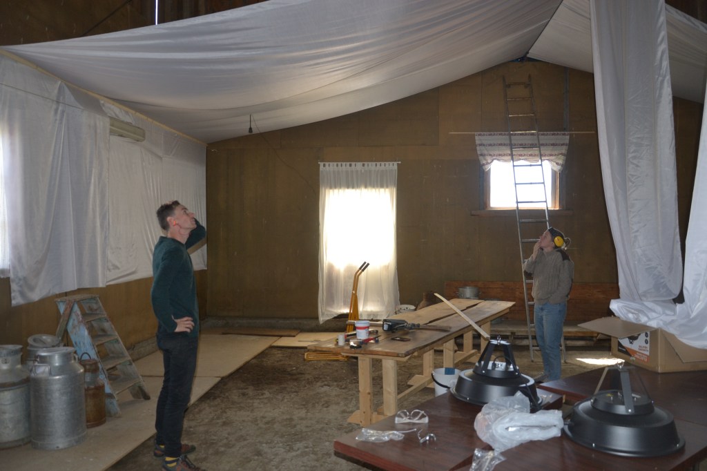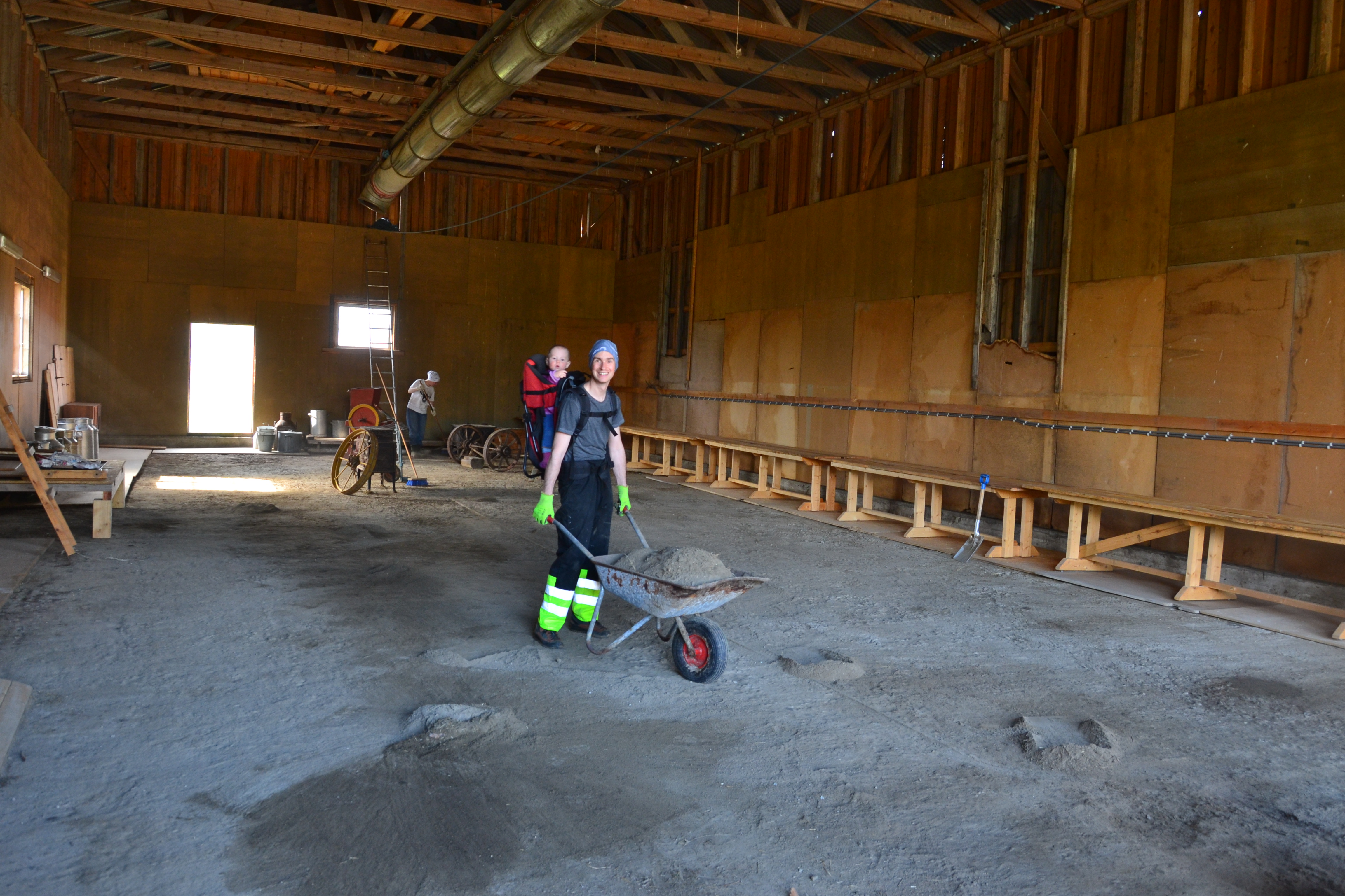 Etter hvert tar det hele form, og vi begynner å se at det vil kunne fungere ganske så bra med bryllupsfest på låven. Vi lager til et ekstra toalett i det gamle geitefjøset, nødutganger merkes og pynt og lys, bilde- lerret og andre ting blir montert opp rundt om i lokalet.