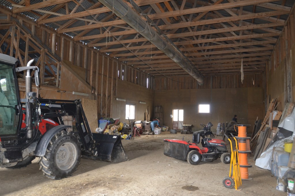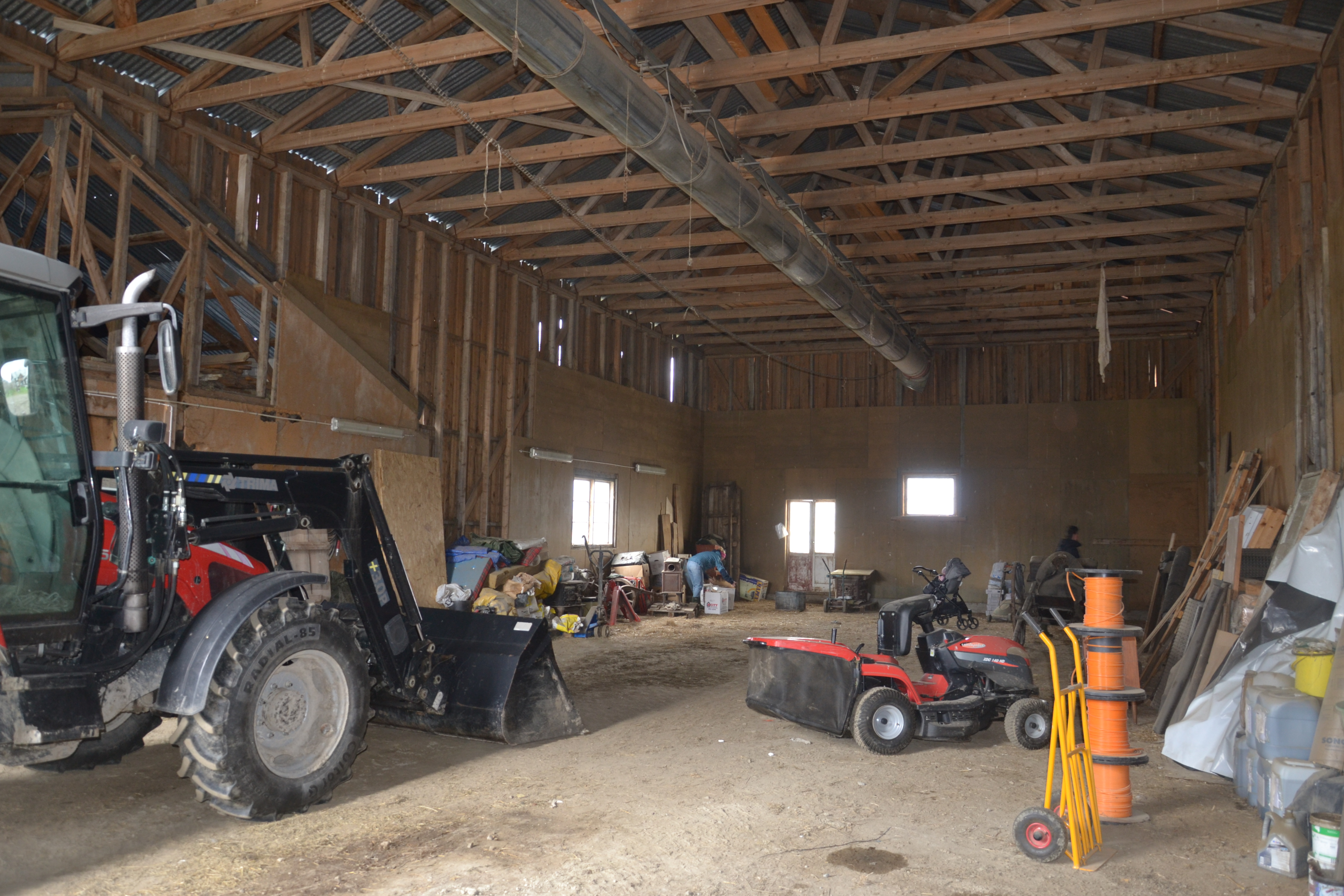 Flere alternativer for feiringen ble vurdert. Nærmere 90 gjester hadde meldt sin ankomst, så lokalet måtte romme en del. Da kom bonden på den vanvittige idéen å bruke den gamle låven vår som festlokale. Se nøye på bildet her, dette er forøvrig etter at det allerede er tatt ut en del redskaper som til vanlig er lagret her. Ville du tenkt det kunne bli en fin bryllupsfest her? Tanter og andre ristet på hodet da de hørte om idéen, men nå var det bestemt, og vi gjøv løs på oppgaven med friskt mot, ca fire uker før bryllupet skulle gå av stabelen.