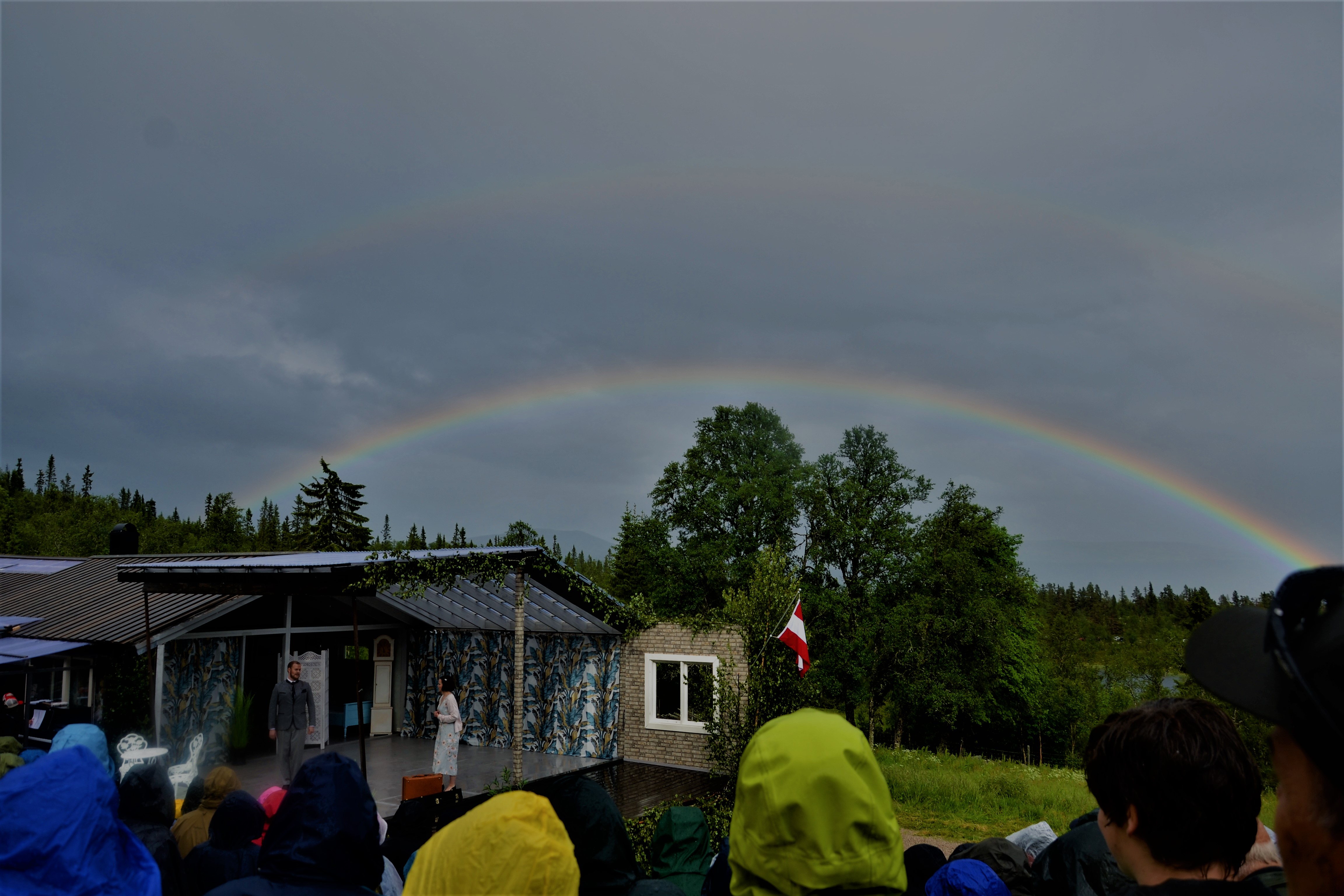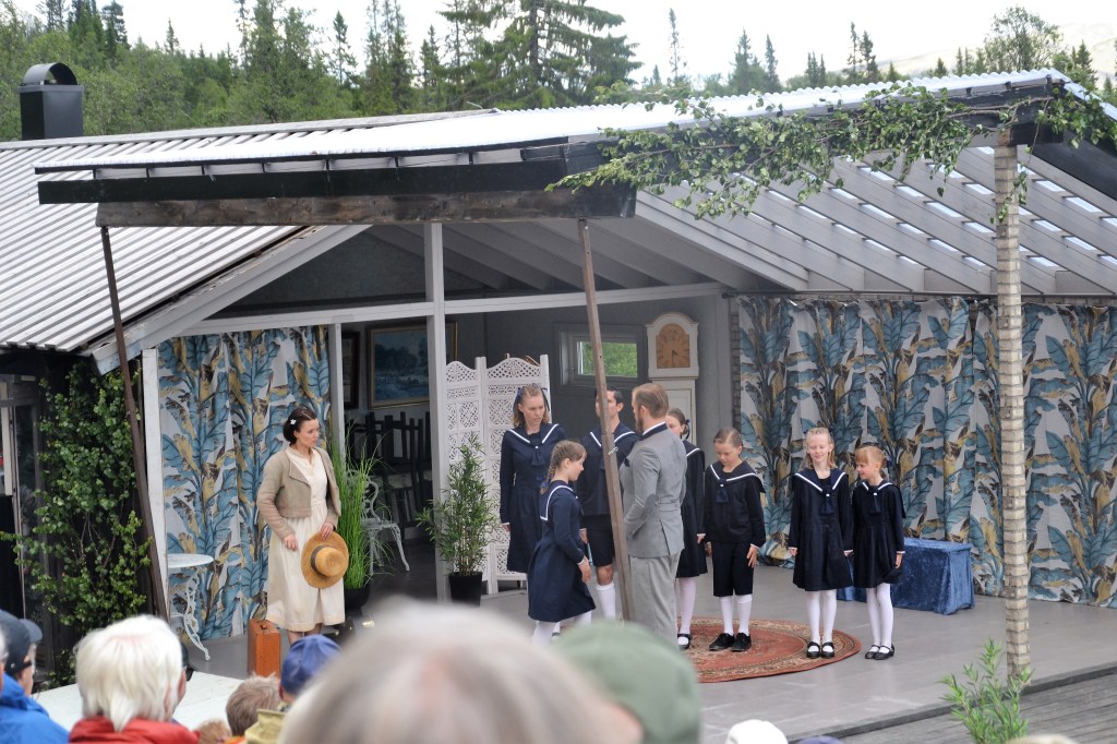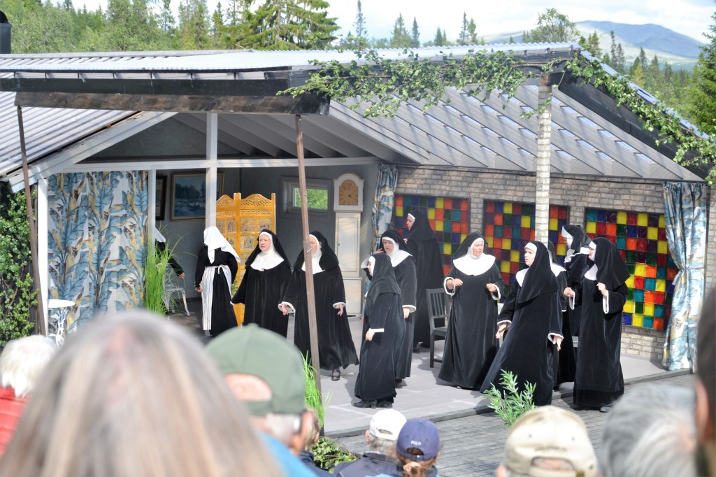 I går var det premiere på Opera di Setra, fjelloperaen som settes opp hver sommer langt inne i fjellheimen på setra til familien Eggen i Tylldalen. Vi var så heldige å ha fått kjøpt billetter til forelstillingen i dag, søndag, før alt ble utsolgt, og fikk overvære nok en flott forestilling på operascenen som tidligere var seterfjøs. I år var det Sound of Music som ble spilt, og vi lot oss imponere av alle aktørene, både profesjonelle, og ikke minst barna som gestaltet rollene i familien von Trapp. Våte ble vi alle, da himmelen plutselig åpnet seg mot slutten av første akt, men med ull under gikk det bra likevel. Vi er såre fornøyde med også denne første helgen i juli. Bare synd sommeren går så alt for fort. Nå skal vi «skynde oss» å nyte noen dager her hjemme før neste vi uke tar en liten ferietur vestover i landet vårt.
