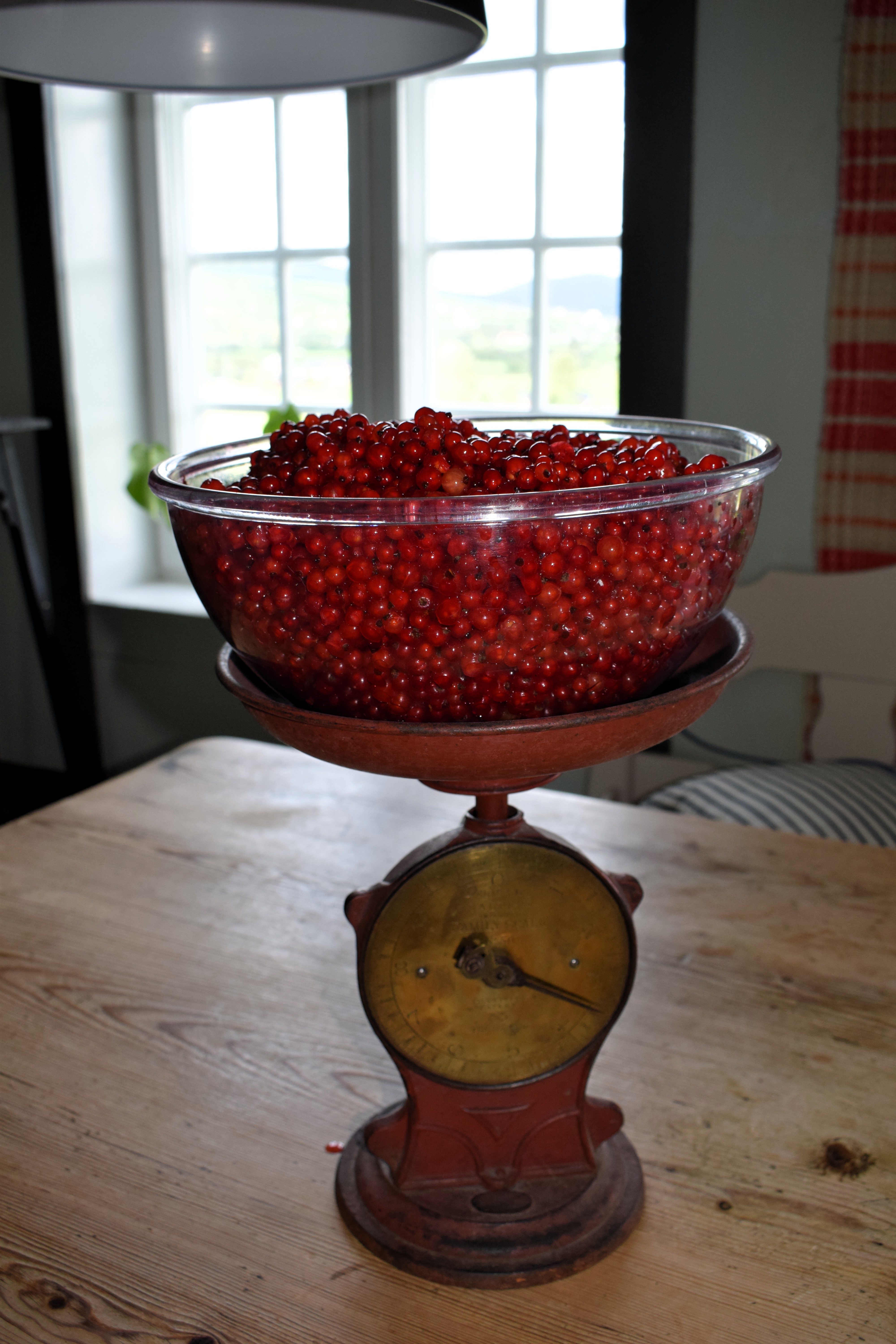 Ripsen er rød og må plukkes. Egentlig var det en lite fristende aktivitet, vi har hatt iskald vind og regnbyger, men med god hjelp av Maiana og Kari, fikk vi en god start. Drøyt 6 kg bær havnet i saftkokeren, og det ferdige resultatet av disse ble rundt fire liter nydelig ripsgele. Altså en bra begynnelse. Vår franske trainee, Maiana, opplevde plukkingen og den etterfølgende lange koketiden som nokså kjedelig. Da resultatet var klart, var hun imidlertid ikke i tvil om at det var verdt innsatsen.