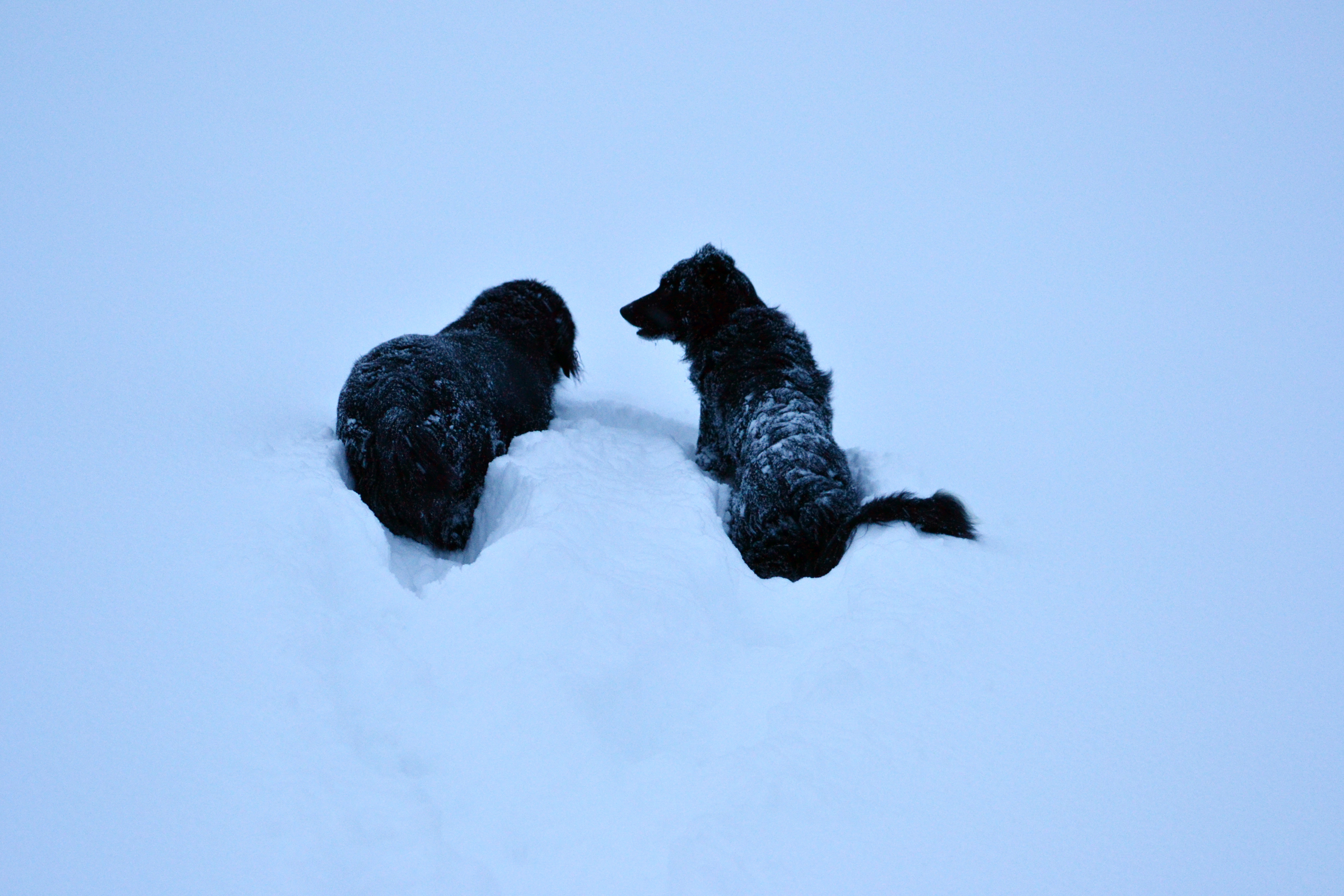 Ella og Bjørk leker gjerne i snøen