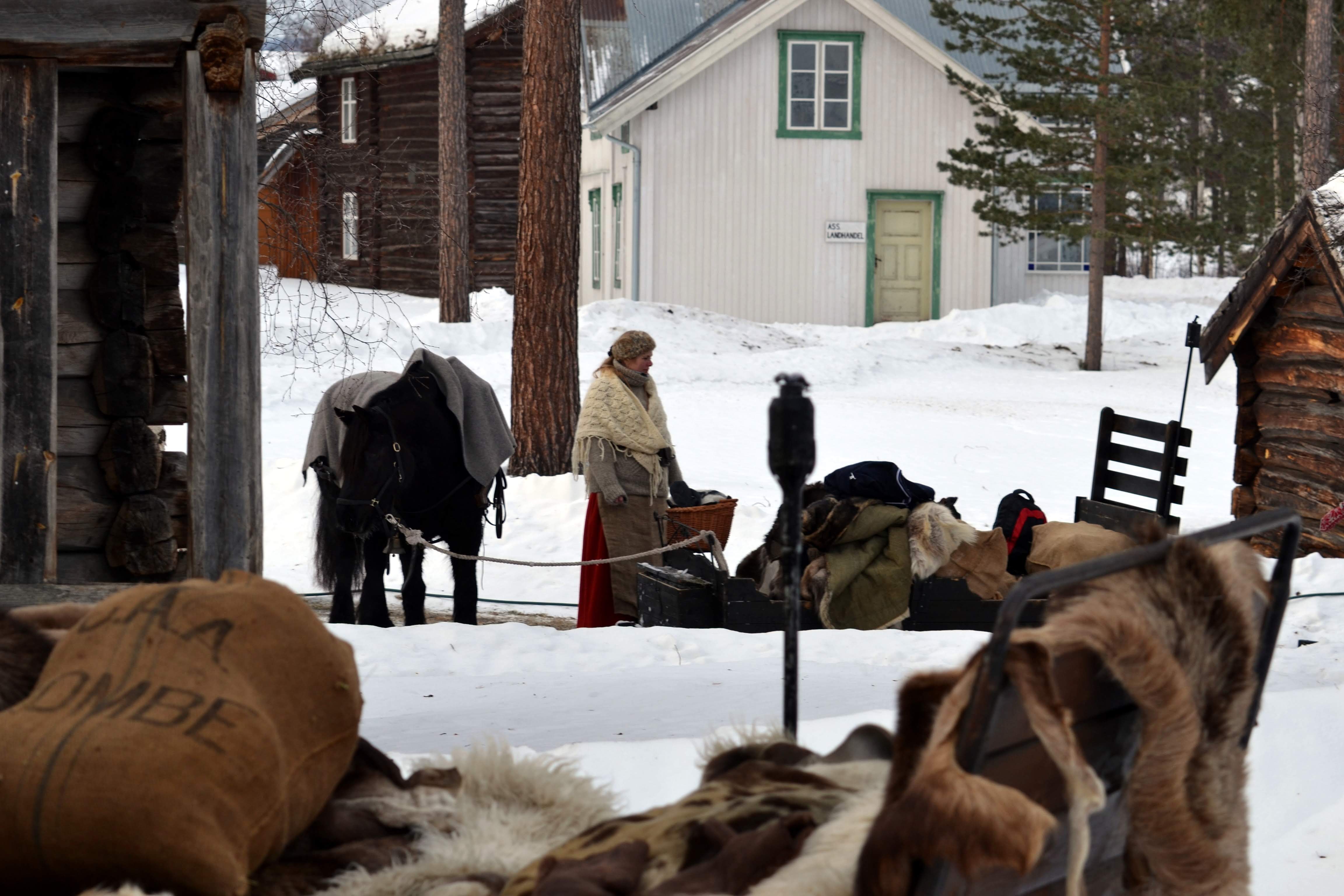Hester og lass klargjøres for ferden videre mot Røros.