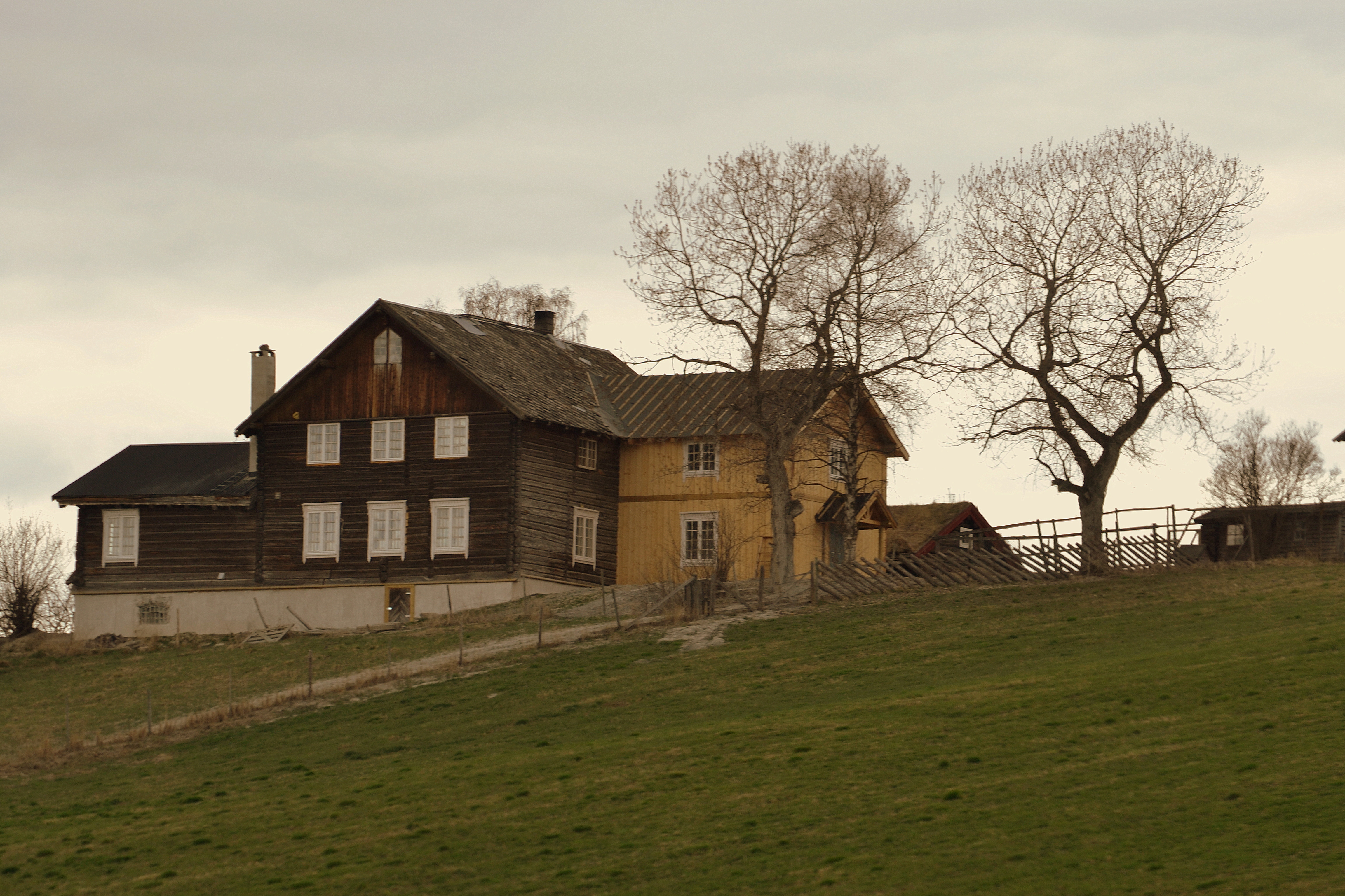 Tidlig i våres var fortsatt det gamle skifertaket på, og tilbygget lyste gult, nytt treverk
