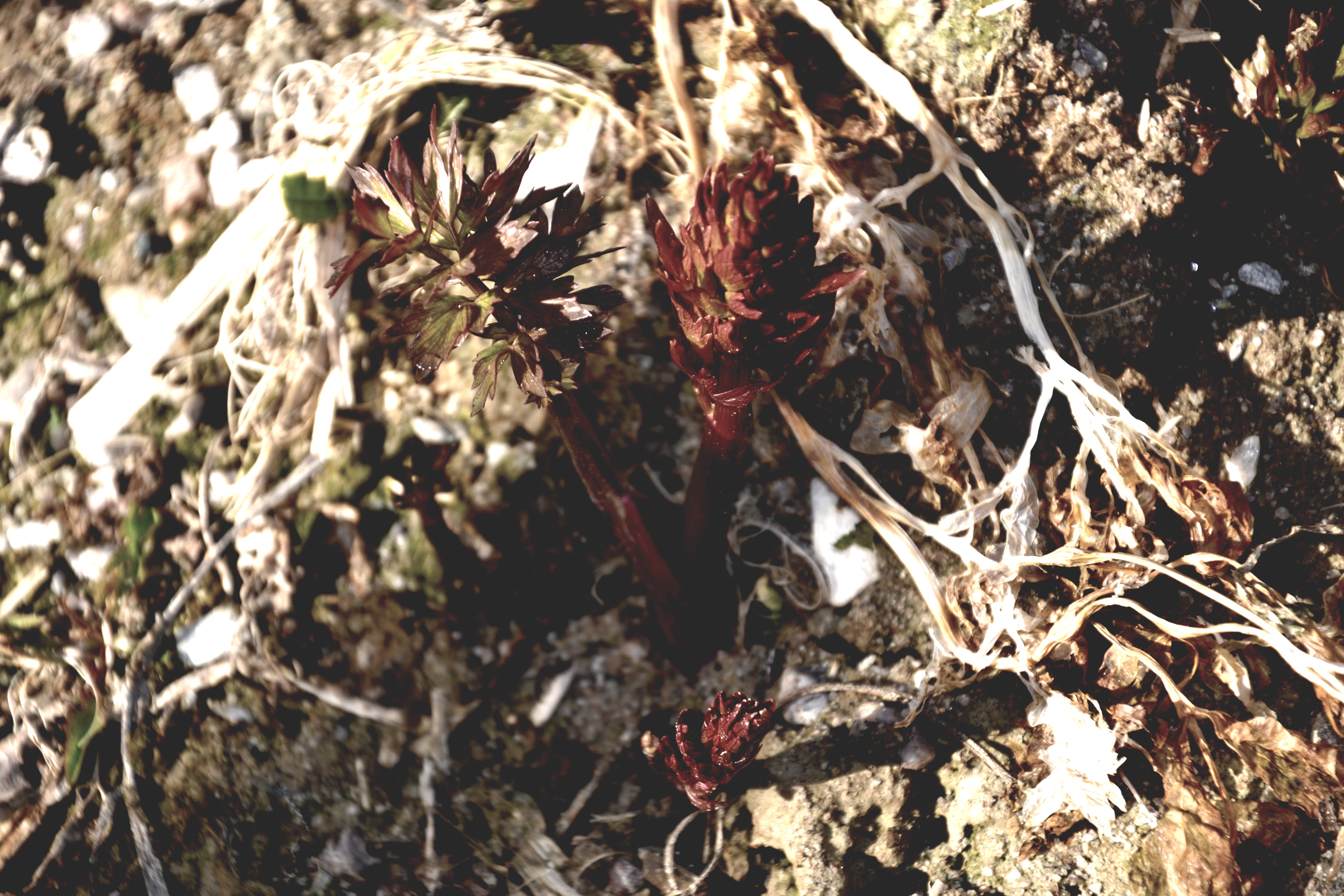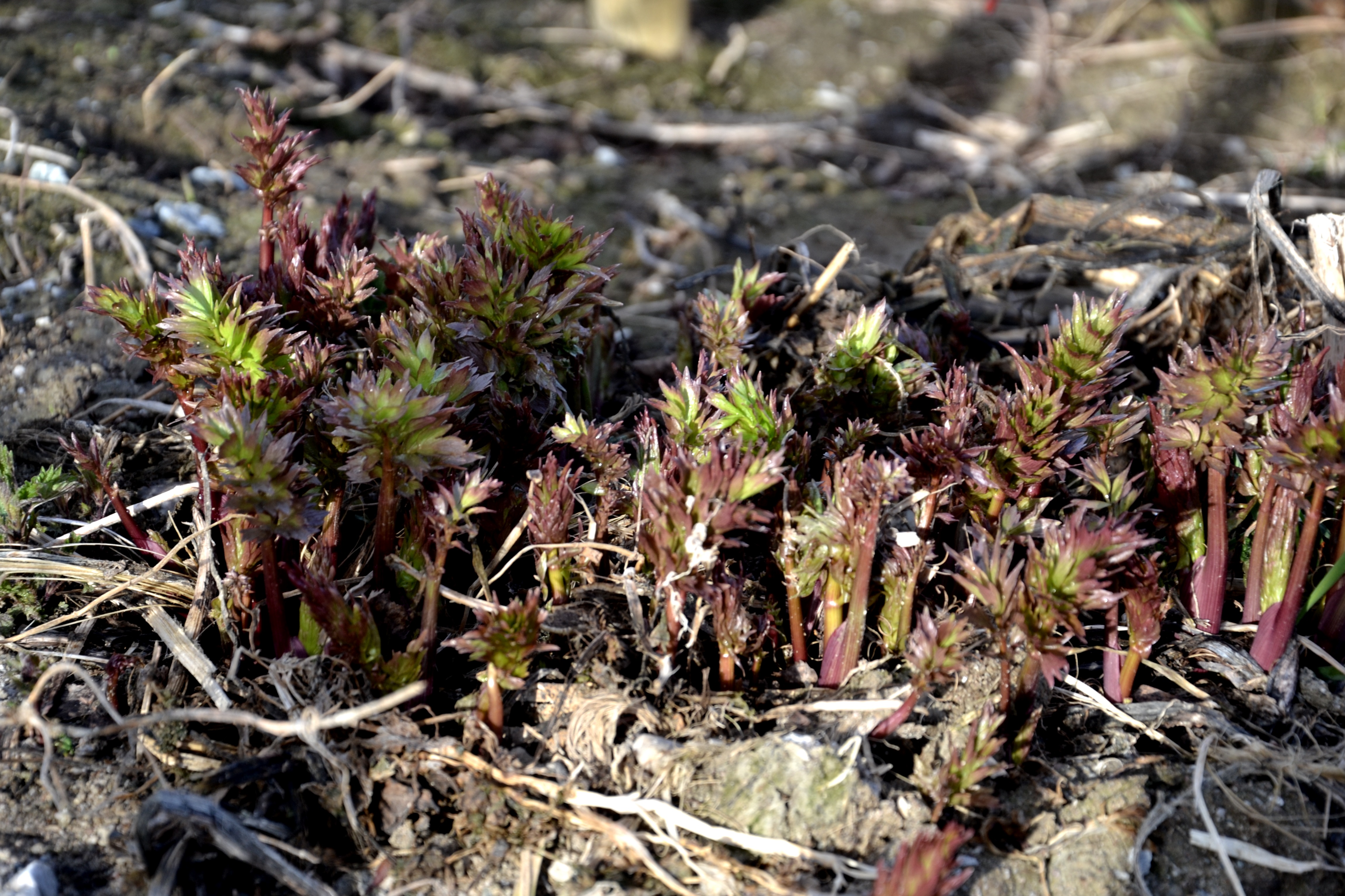 - – og på gården. Her er det ripsen som så vidt begynner å få grønne blader